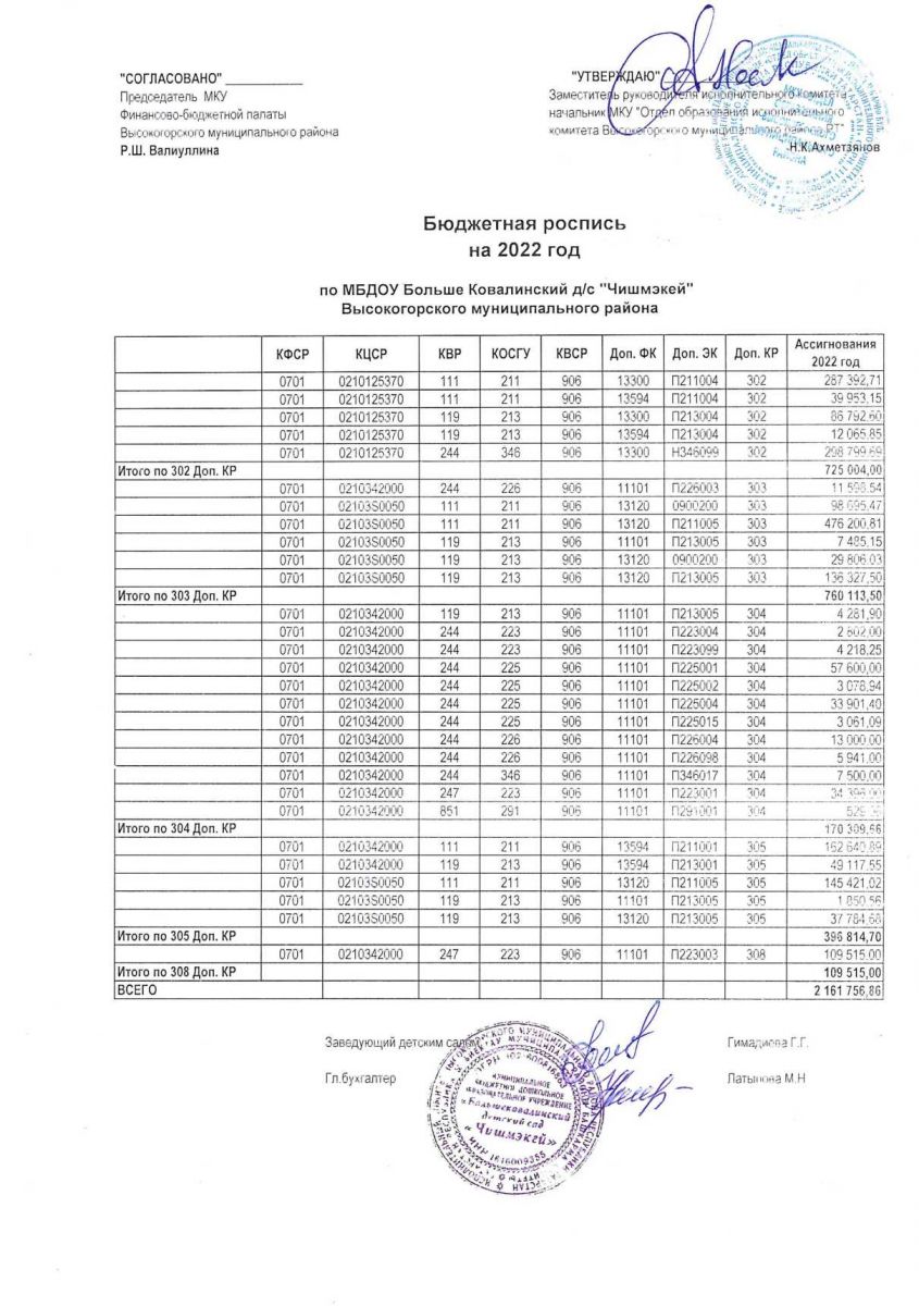 Бюджетная роспись на 2022г