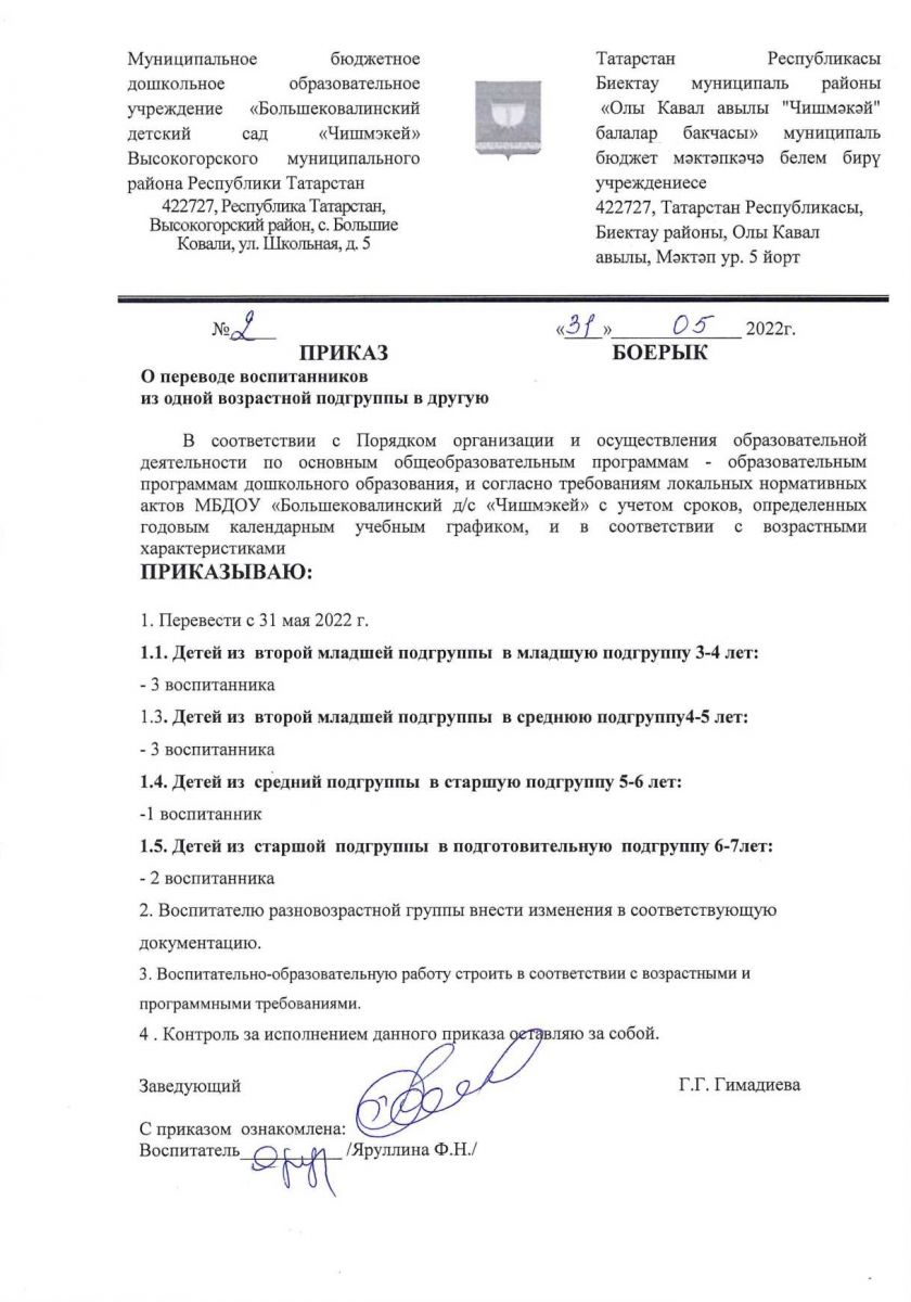 Комплектование 2022-2023 у.г.(копия приказа о переводе воспитанников из одной возрастной подгруппы в другую 2022)