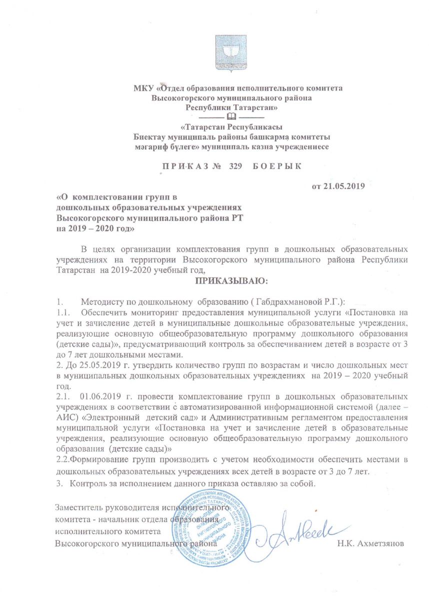 Комплектование на 2019-2020 учебный год