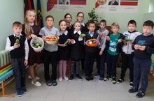 Уңыш бәйрәменә багышлап укучылар яшелчә һәм җиләк-җимешләрдән төрле эшләнмшлшр әзерләделәр.