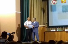 Укытучыларның август киңәшмәләрен йомгаклап бүген район мәдәният йортында пленар утырыш булды. Монда район башлыгы Калимуллин Рөстәм Галиулла улы да катнашты. Район башлыгы безнең мәктәпнең математика һәм физика укытучысы Хәсәнова Гүзәл Ирек кызына мактау грамотасы тапшырды.