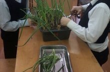 Мәктәптә яшел суган уңышы өлгерде. Суган кыякларын җыеп бетерүгә яңаларын утыртачакбыз.