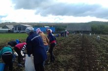 Укучылар һәм укытучылар көче белән бәрәнге уңышы җыелды 10.09.2016