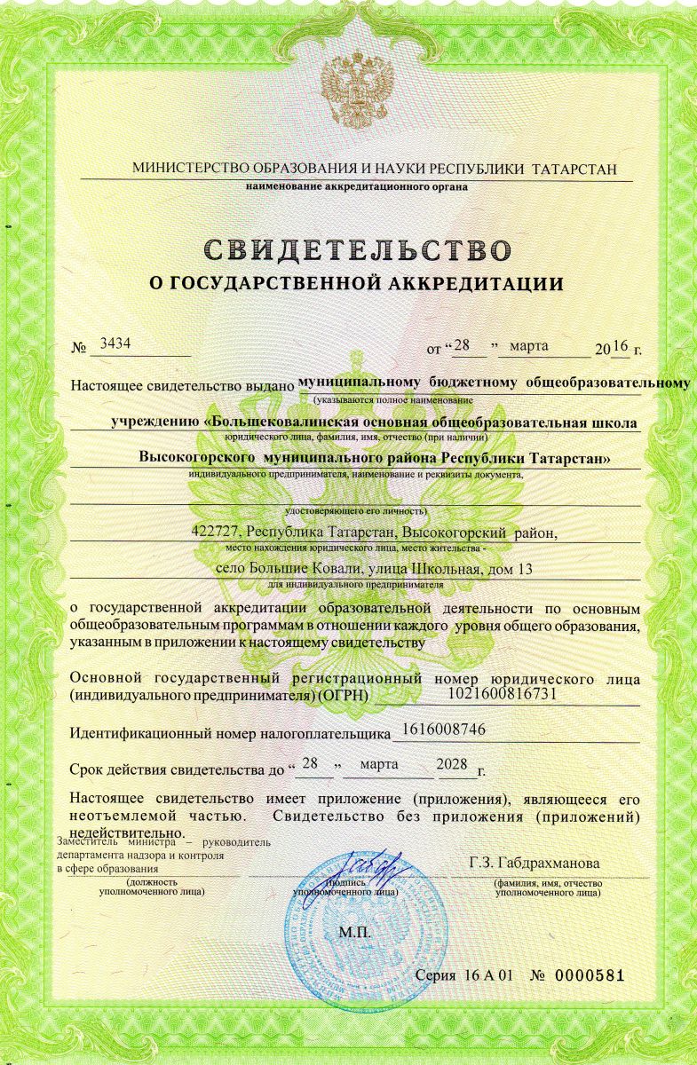 муниципальное бюджетное общеобразовательное учреждение «Большековалинская основная общеобразовательная школа Высокогорского муниципального района Республики Татарстан"/ "Татарстан Республикасы Биектау муниципаль районының Олы Кавал төп гомуми белем мәктәбе" муниципаль бюджет гомуми белем учреждениесе