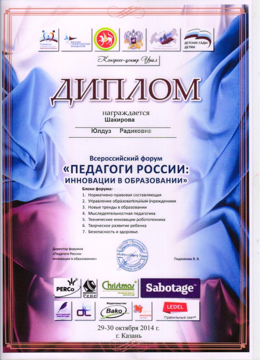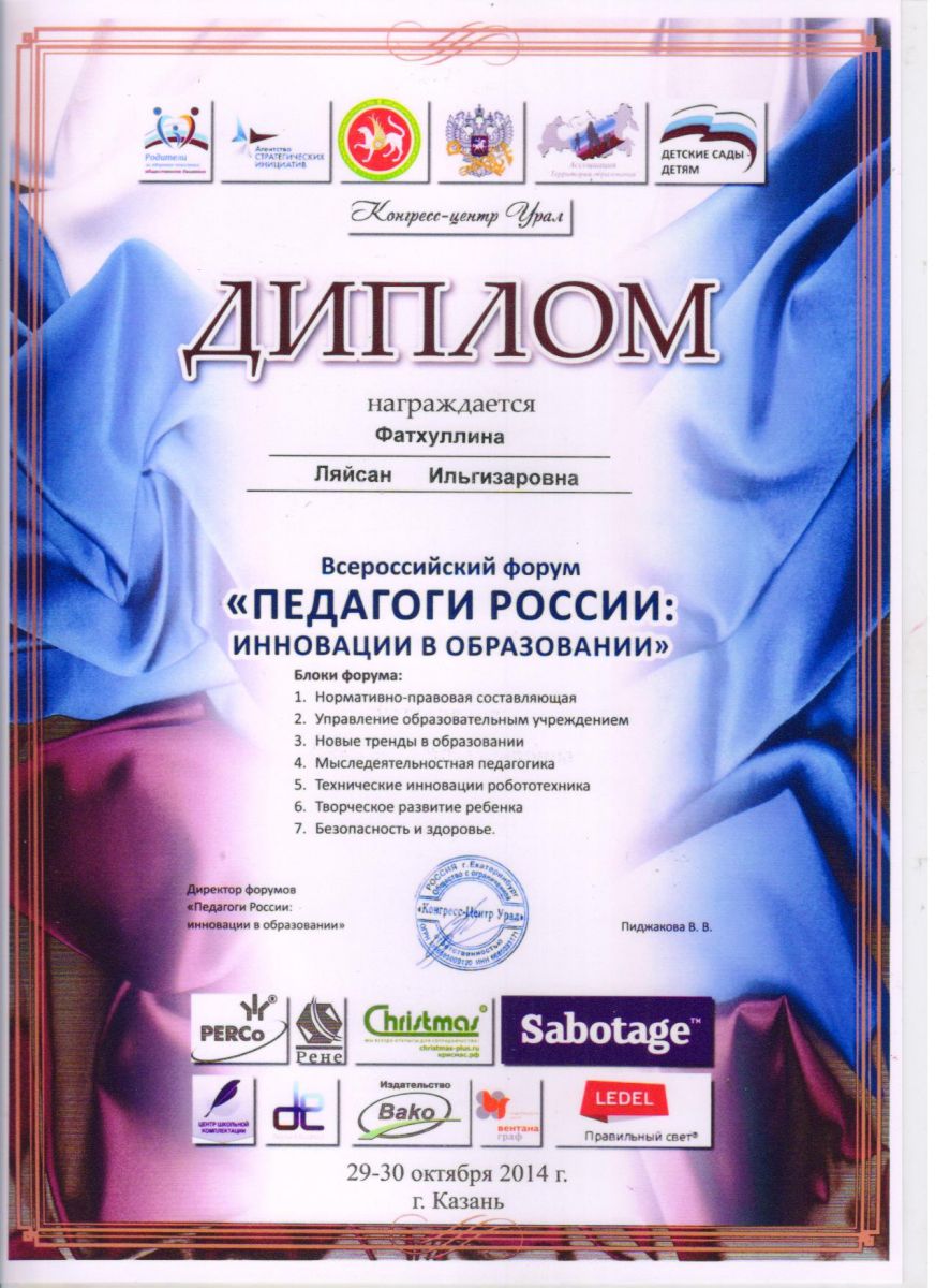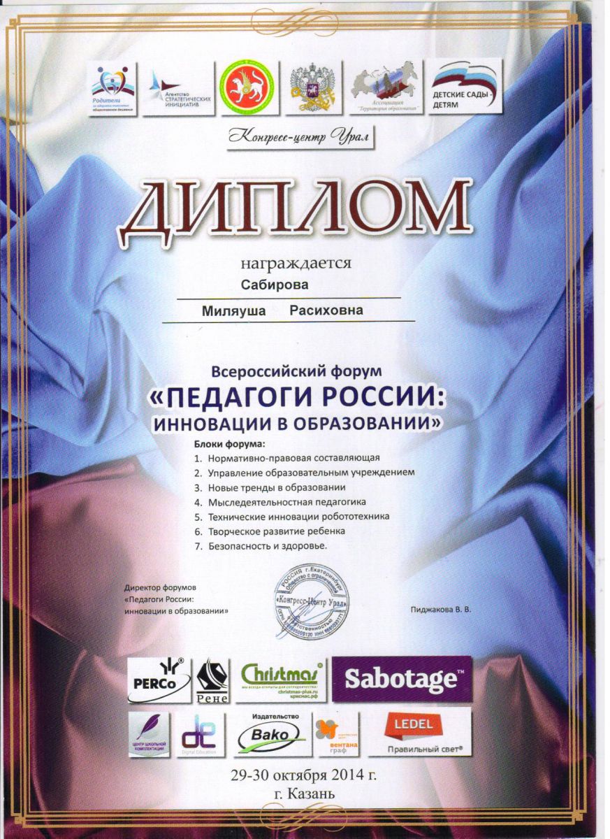 Сабирова Миляуша Расиховна 0 Всероссийский форум "Педагоги России:инновации в образовании"