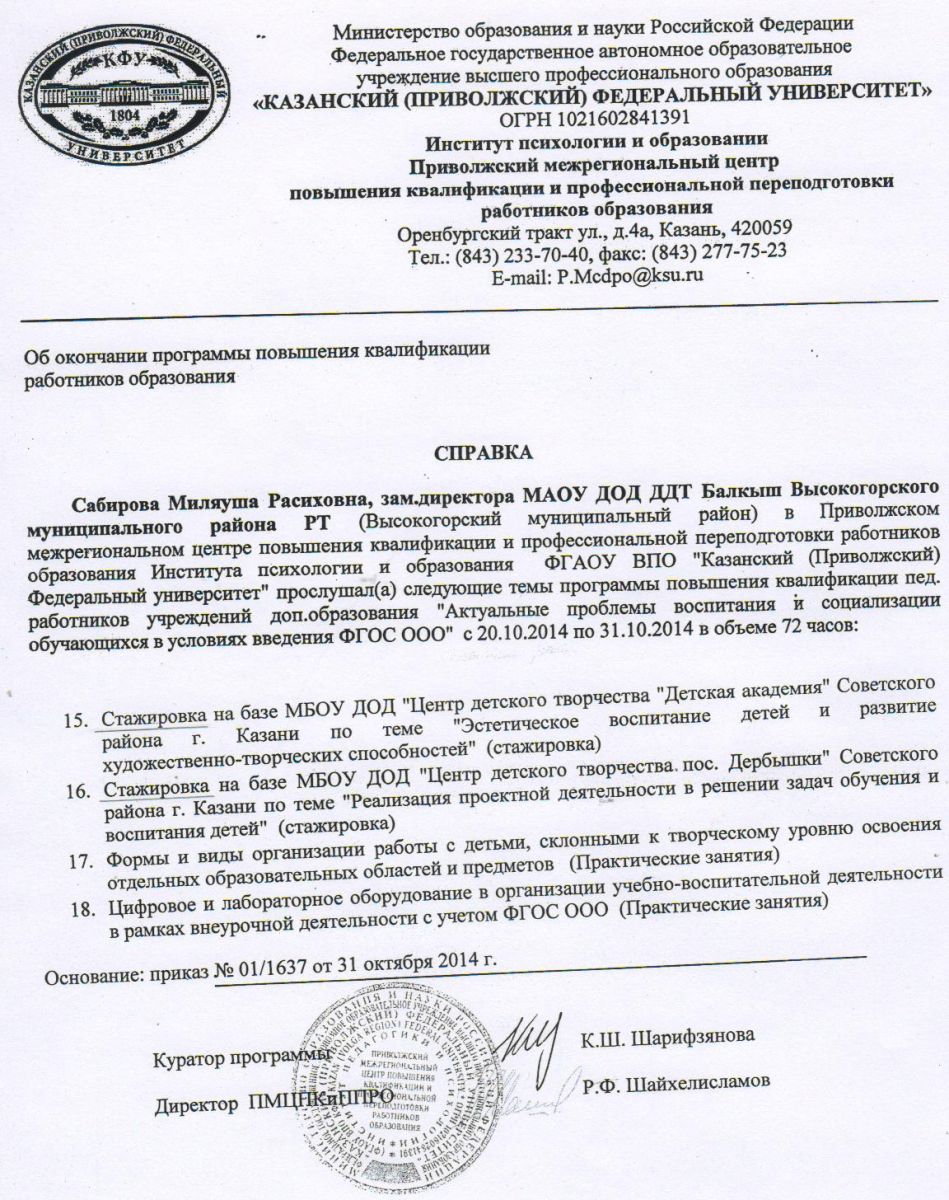 Сабирова Миляуша Расиховна -стажировка (октябрь 2014 г.)
