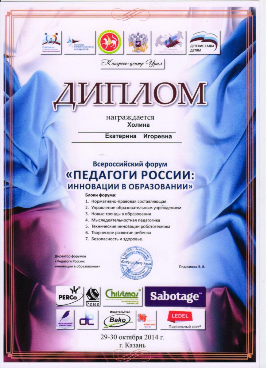 Холина Екатерина Игоревна - Всероссийский форум "Педагоги России:инновации в образовании"