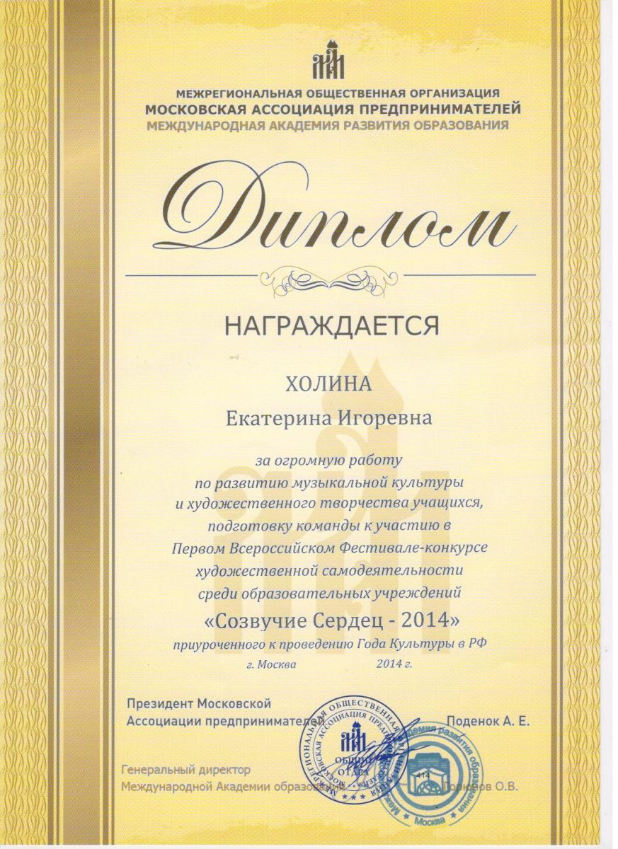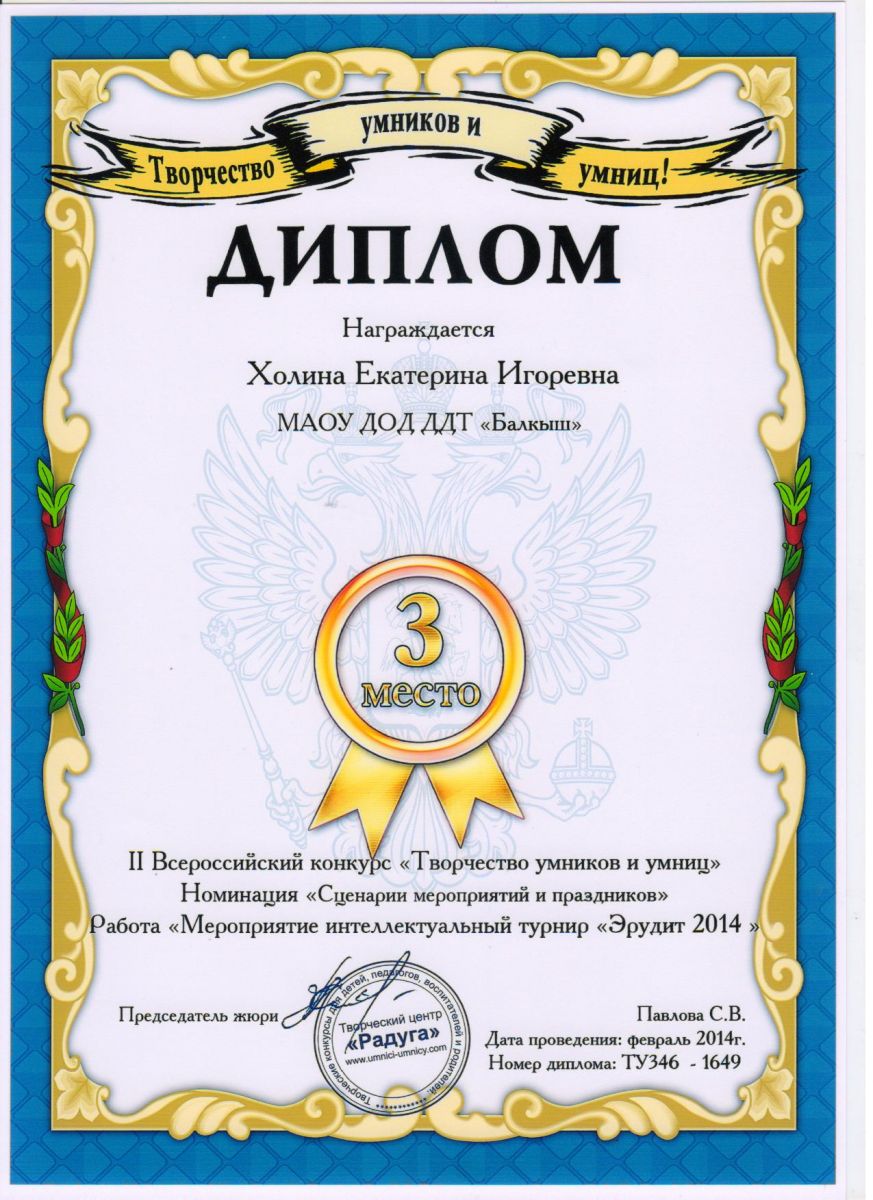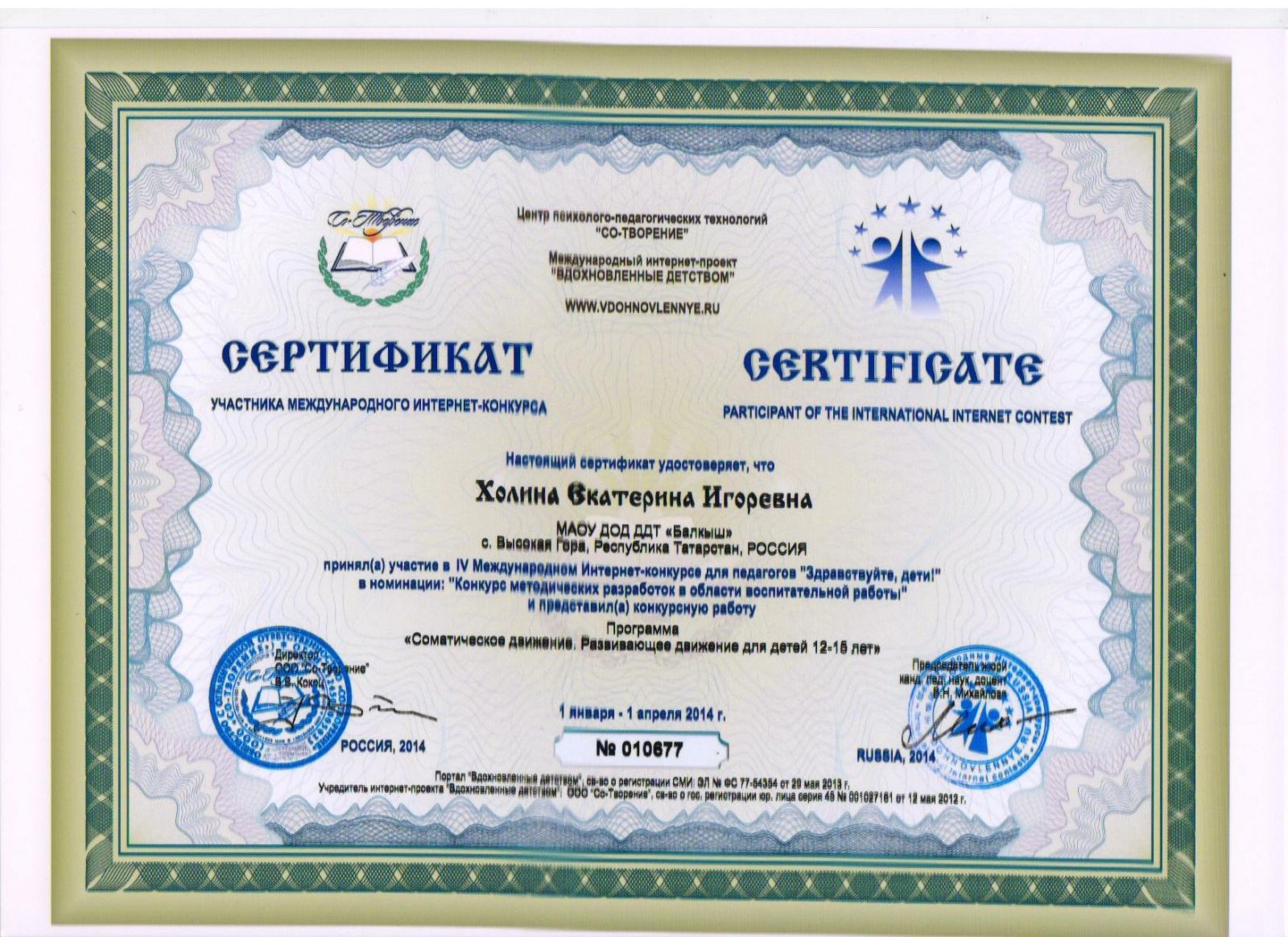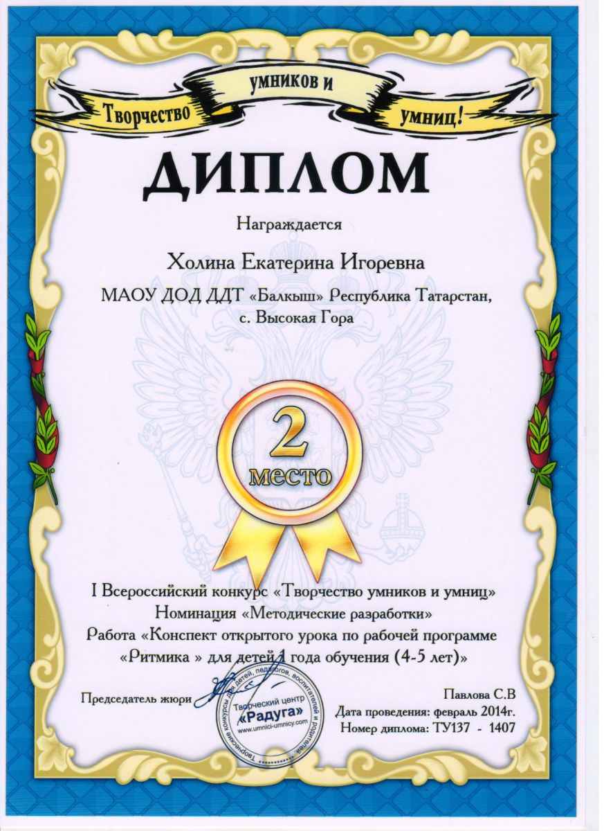 Холина Екатерина Игоревна - IV Международный интернет-конкурс для педагогов"Здравствуйте, дети!"