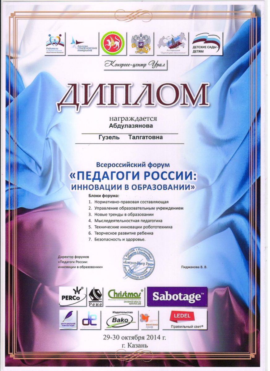 Абдулазянова Гузель Талгатовна - Всероссийский форум "Педагоги России: инновации в образовании"