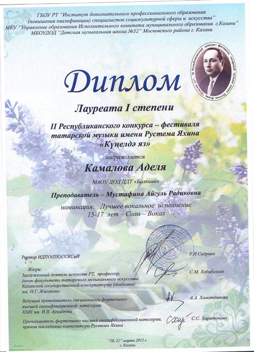 Камалова Аделя - Республиканский фестиваль-конкурс татарской музыки