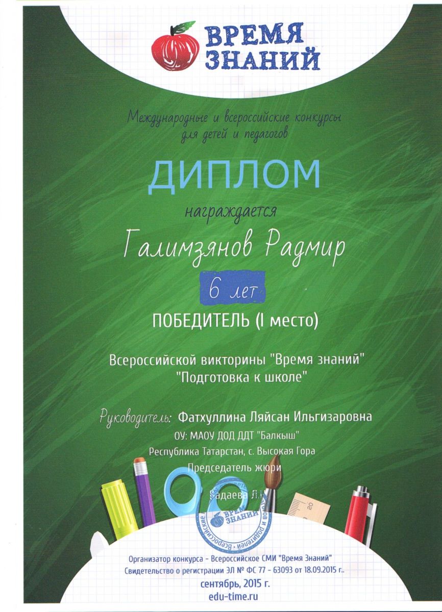 Галимзянов Радмир - Всероссийская викторина "Время знаний"