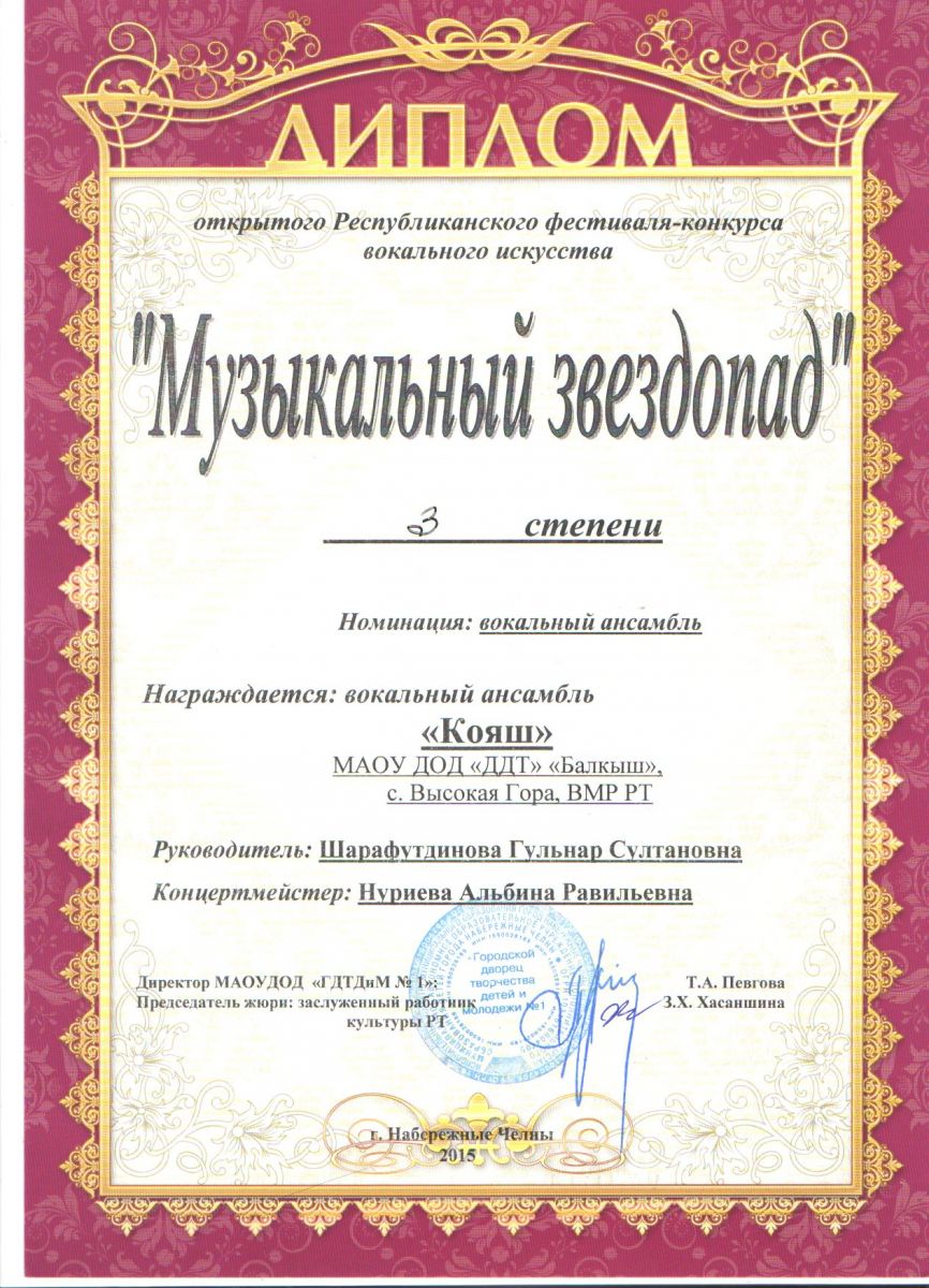 Открытый Республиканский фестиваль- конкурс вокального искусства "Музыкальный звездопад"