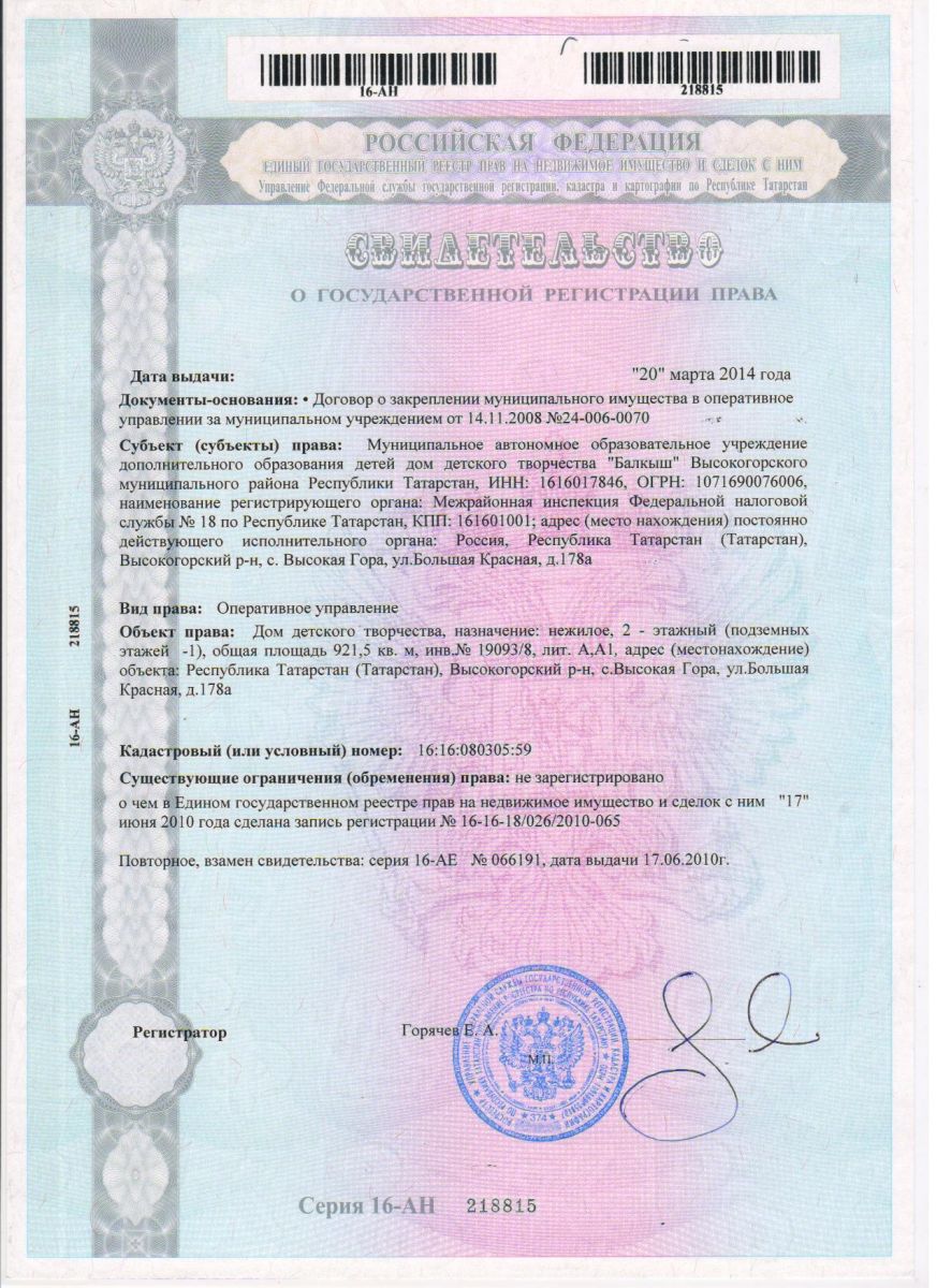 Свидетельство о гос.регистрации права на имущество
