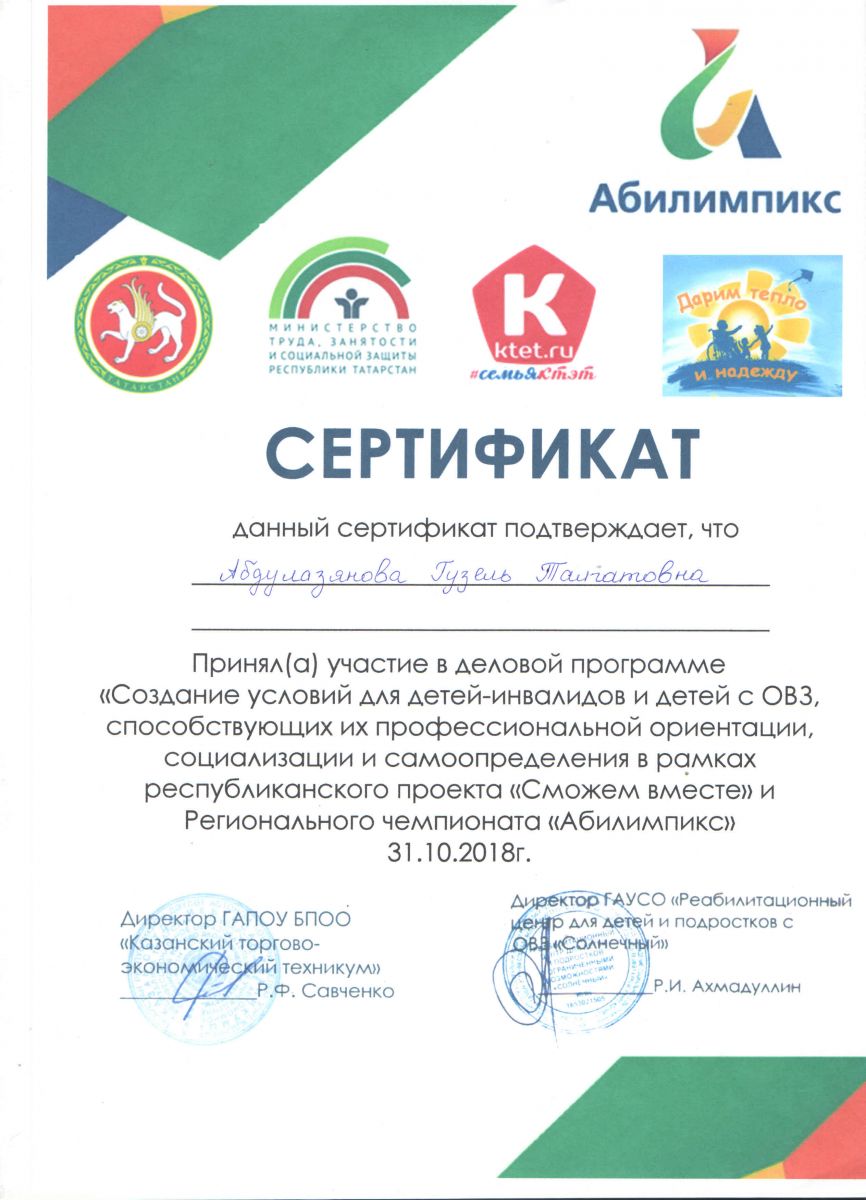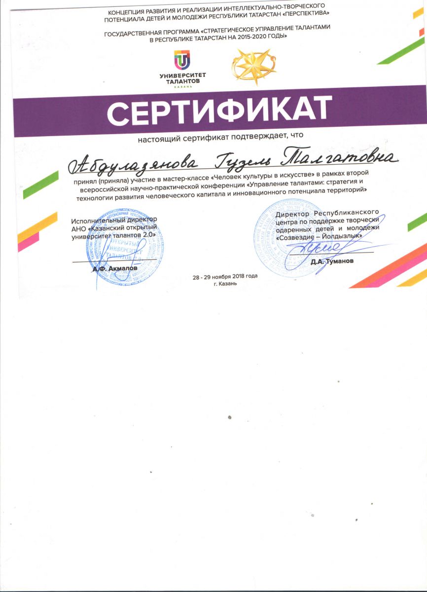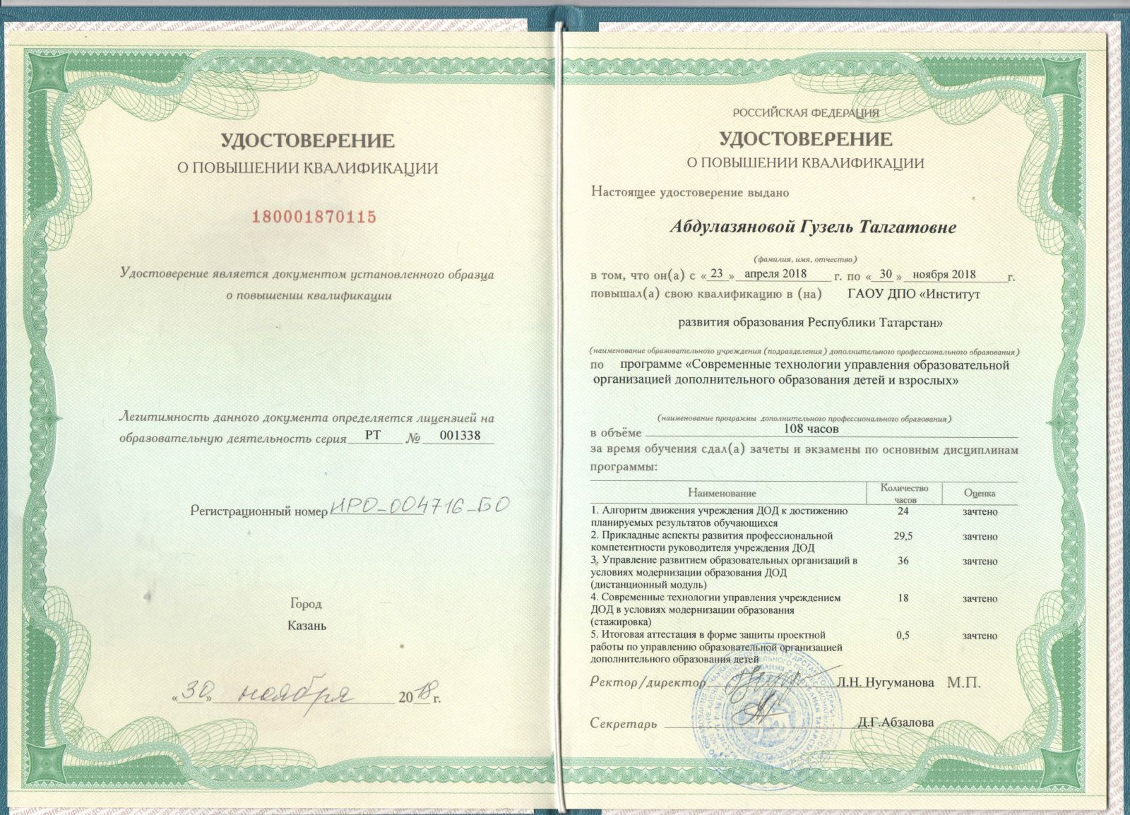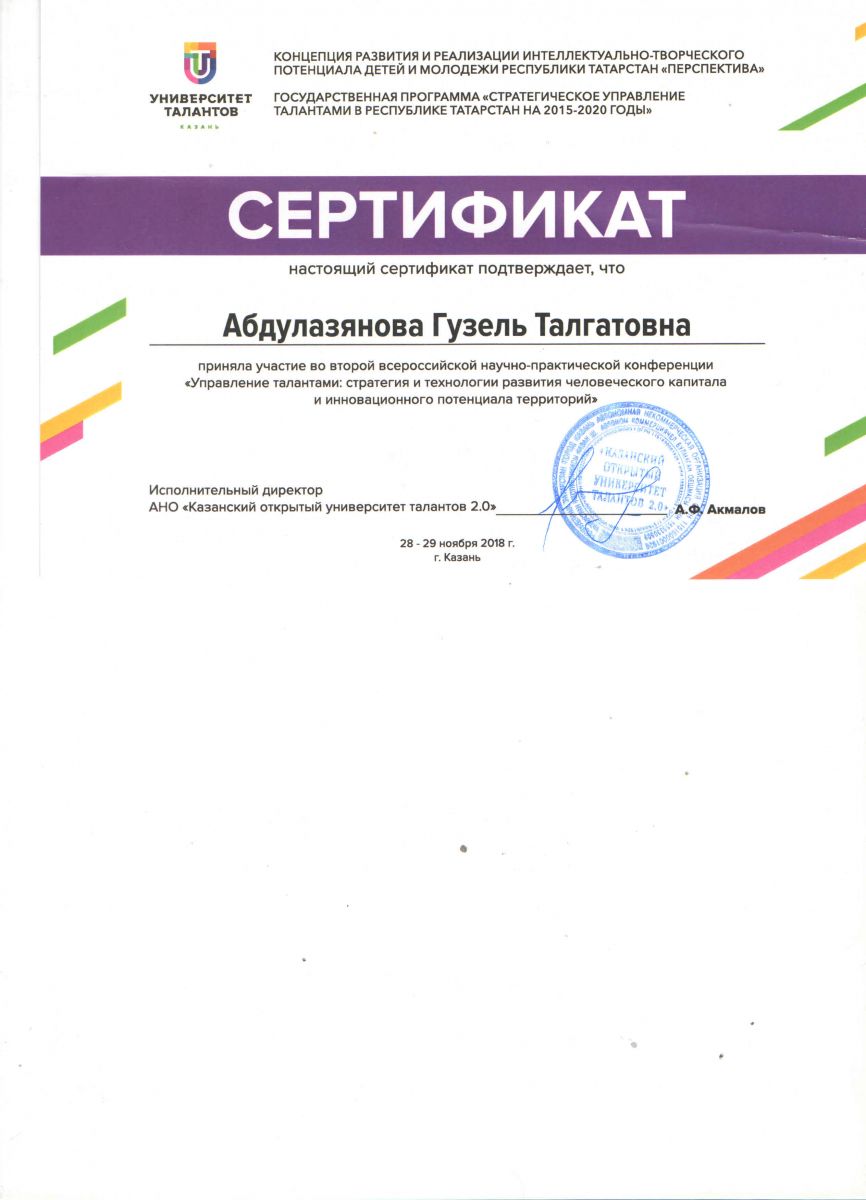 Абдулазянова Гузель Талгатовна - повышение квалификации и стажировка, апрель- ноябрь 2018 г.