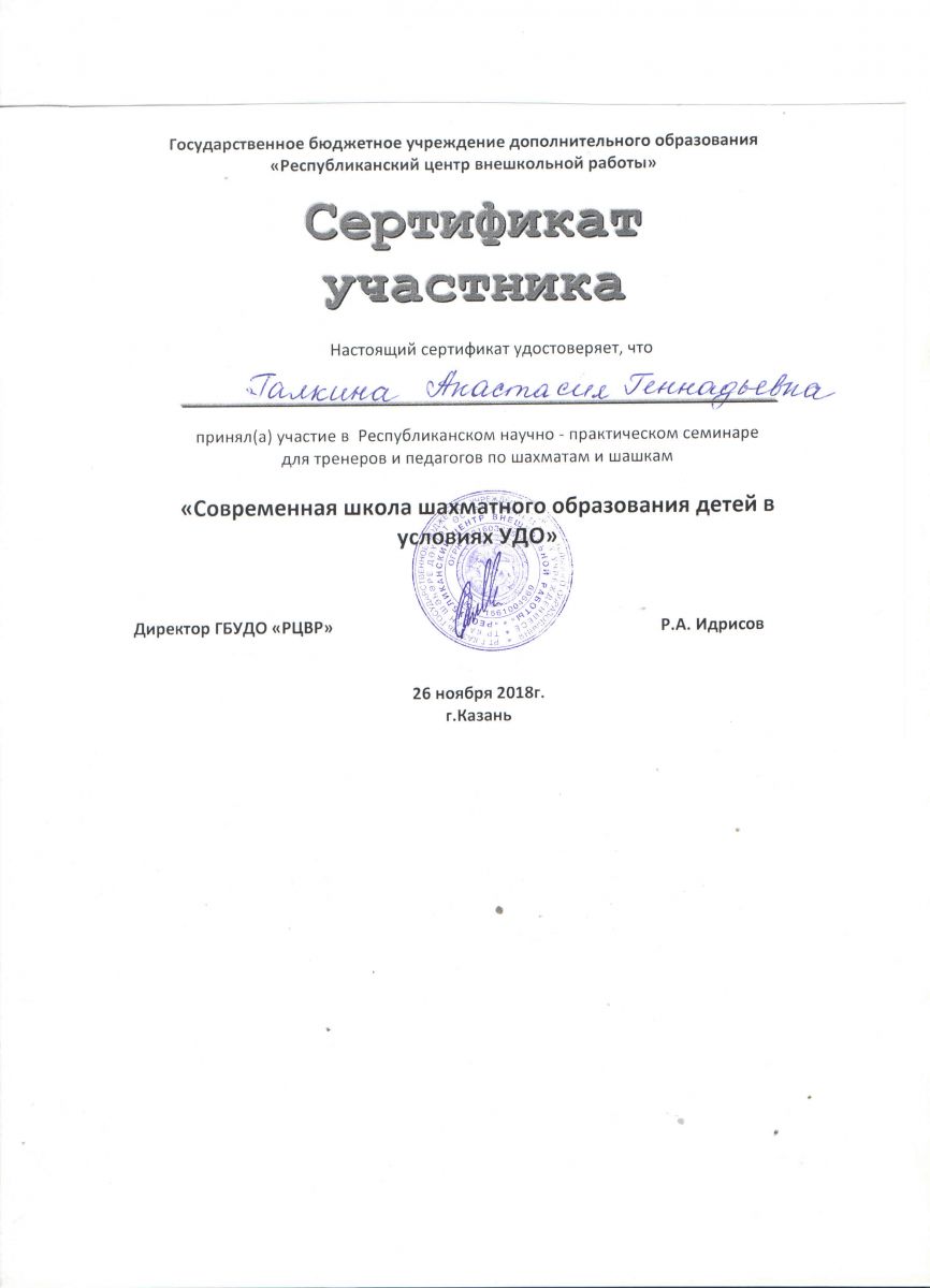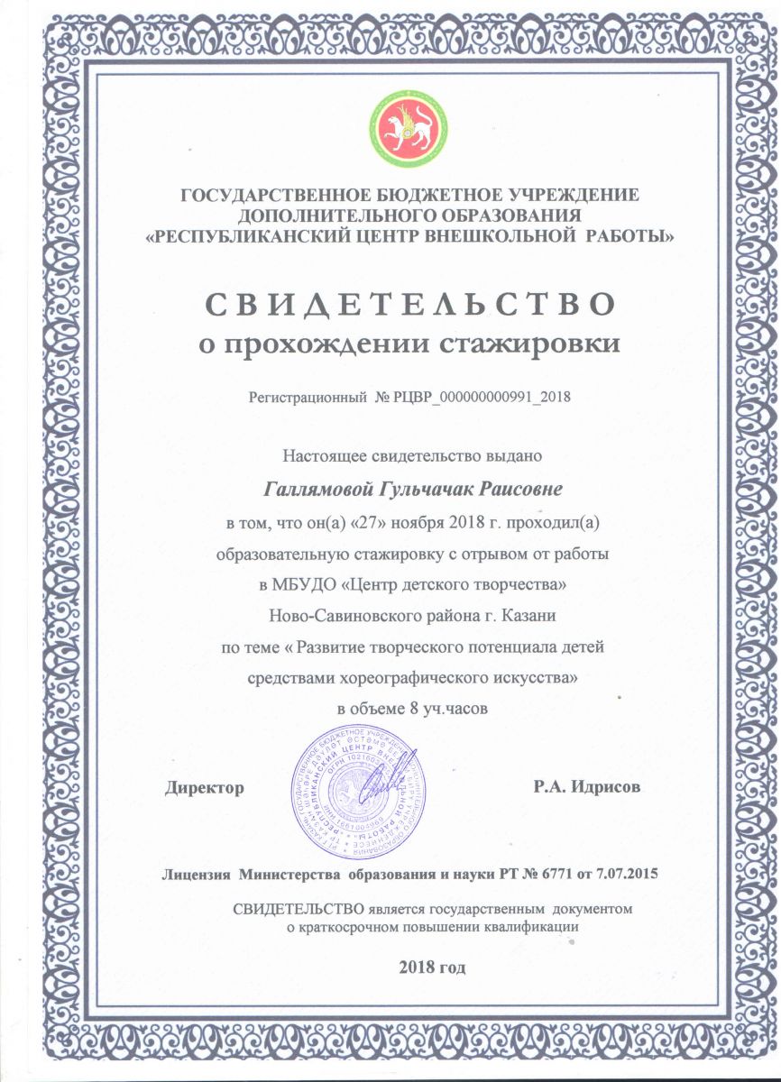 Галлямова Гульчачак Раисовна - стажировка, ноябрь 2018 г.