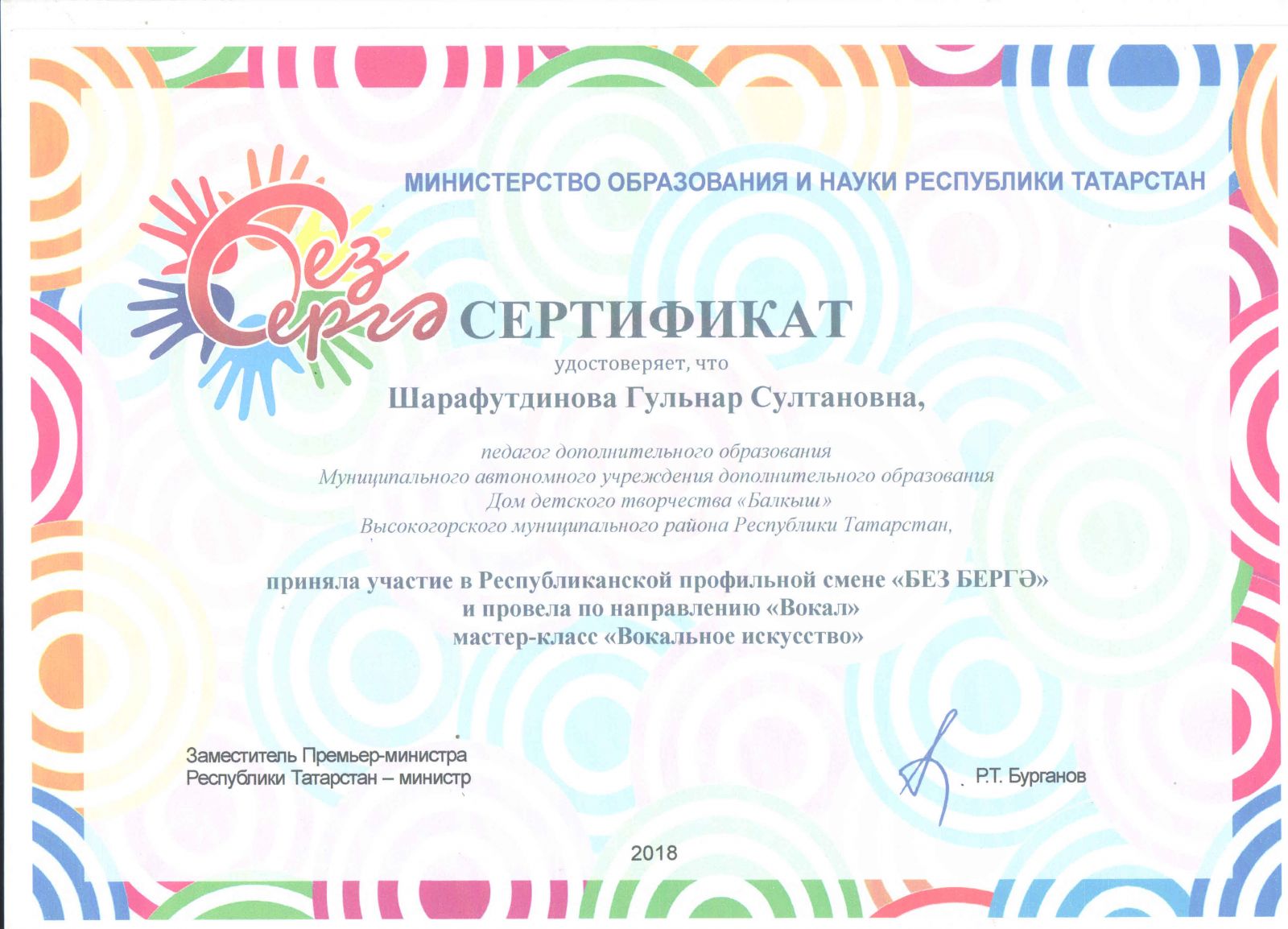 Шарафутдинова Гульнар Султановна - стажировка,январь 2019 г.