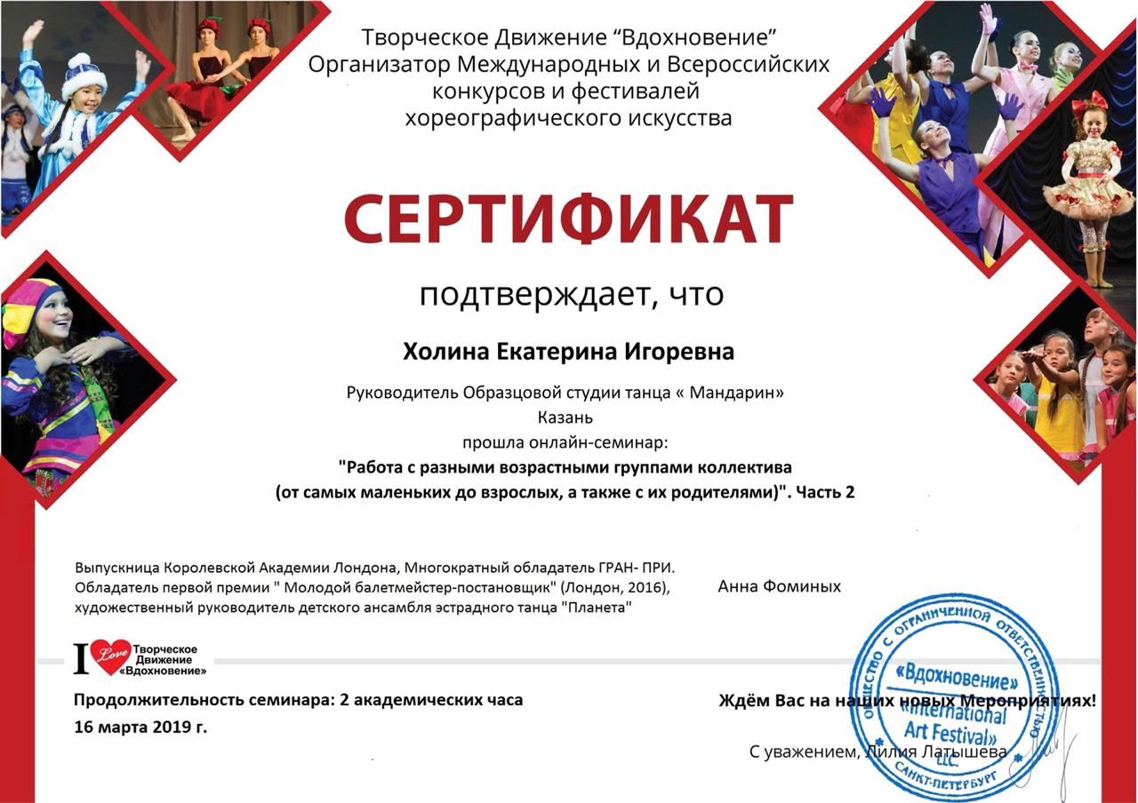 Холина Екатерина Игоревна - онлайн-семинар "Работа с разными возрастными группами коллектива"