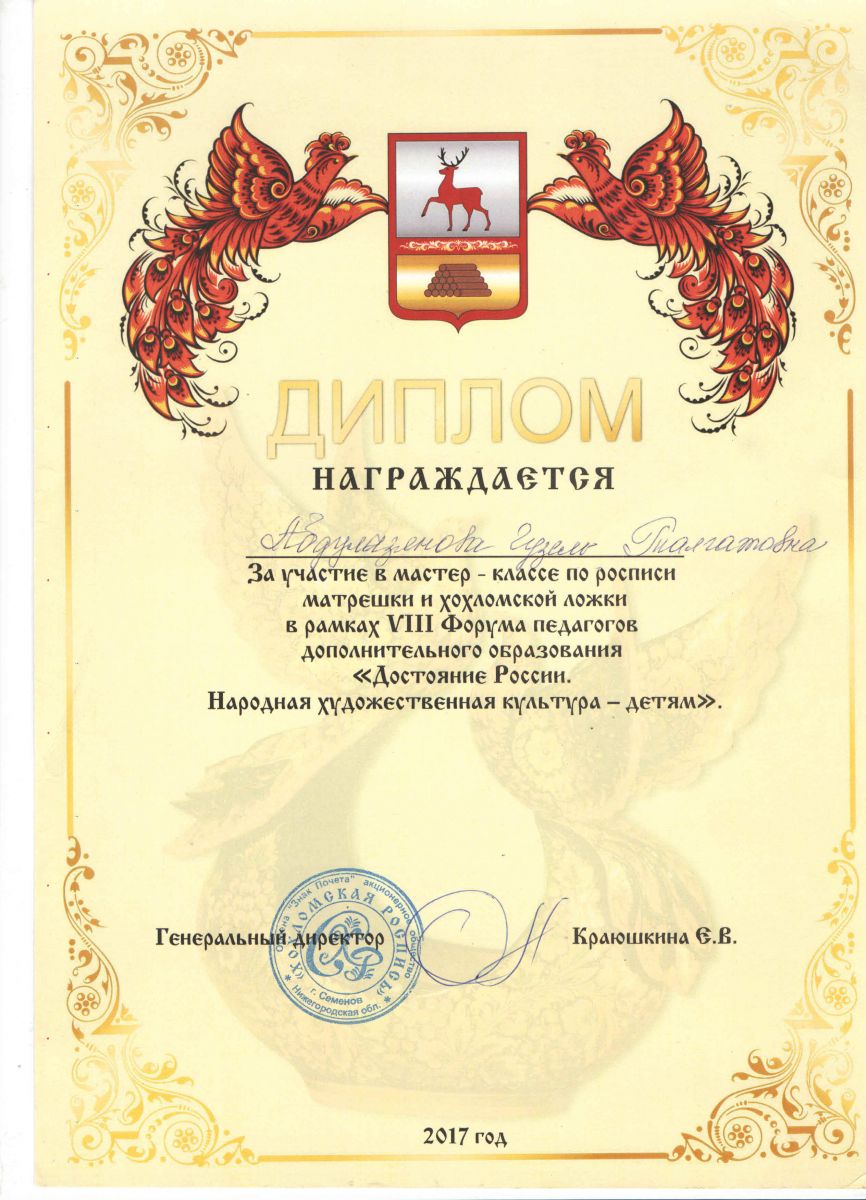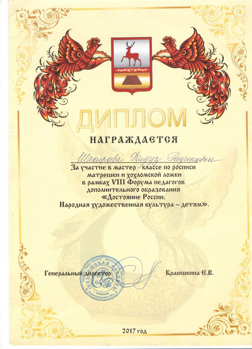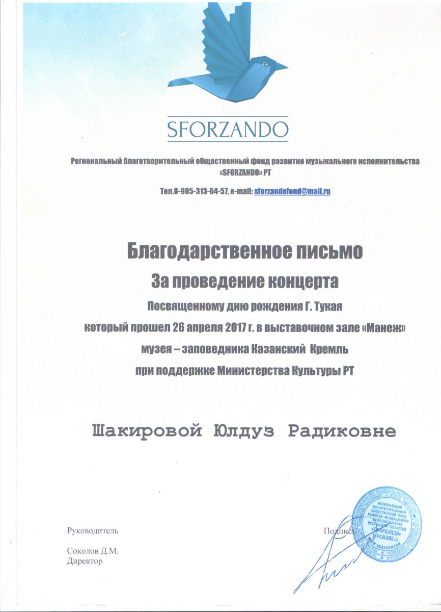 Шакирова Юлдуз Радиковна - Благодарственное письмо, МАНЕЖ, 2017