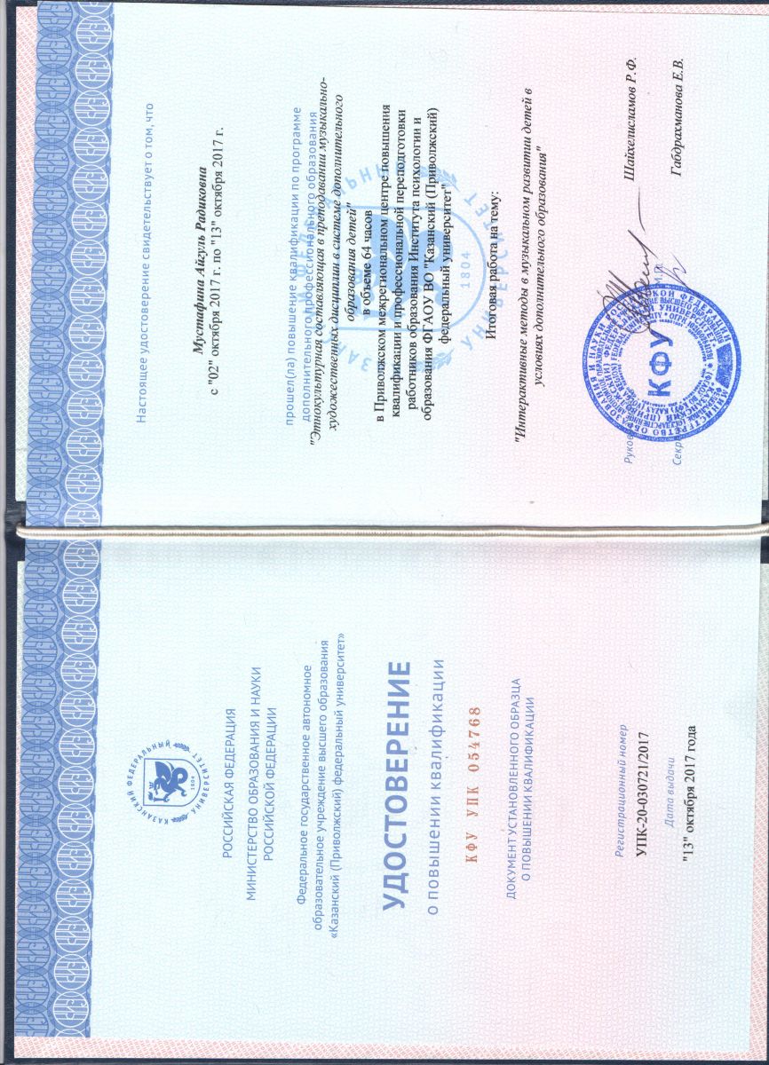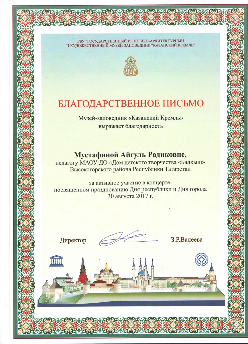 Мустафина Айгуль Радиковна - Благодарственное письмо, Казанский Кремль, 30 августа 2017 г.