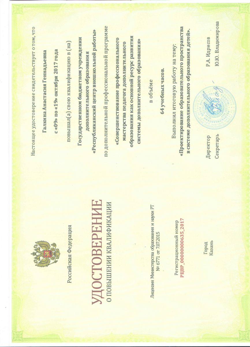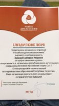 Холина Екатерина Игоревна - Благодарственное письмо РЦВР, 2017