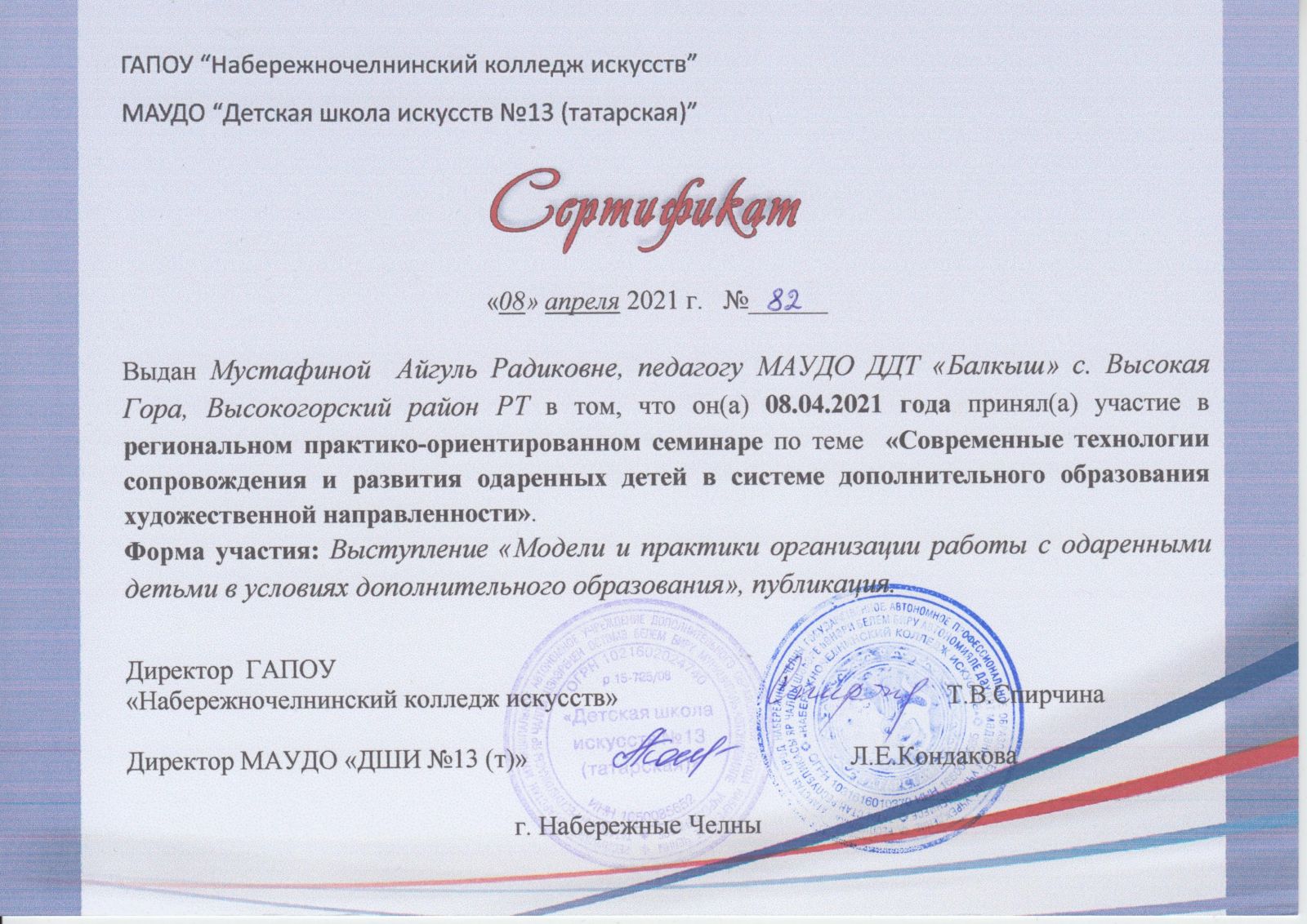 Мустафина Айгуль Радиковна - районный конкурс проф.мастерства "Открытое занятие", 1 место