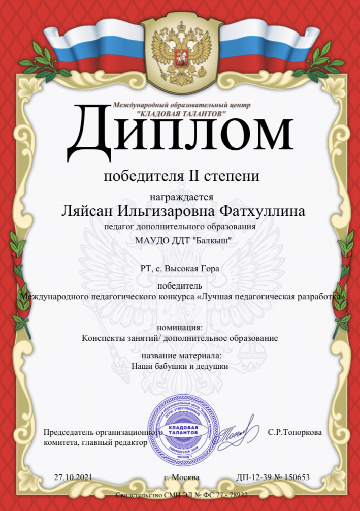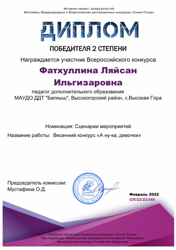 Фатхуллина Ляйсан Ильгизаровна- Фестиваль международных и всероссийских дистанционных конкурсов, 2 место