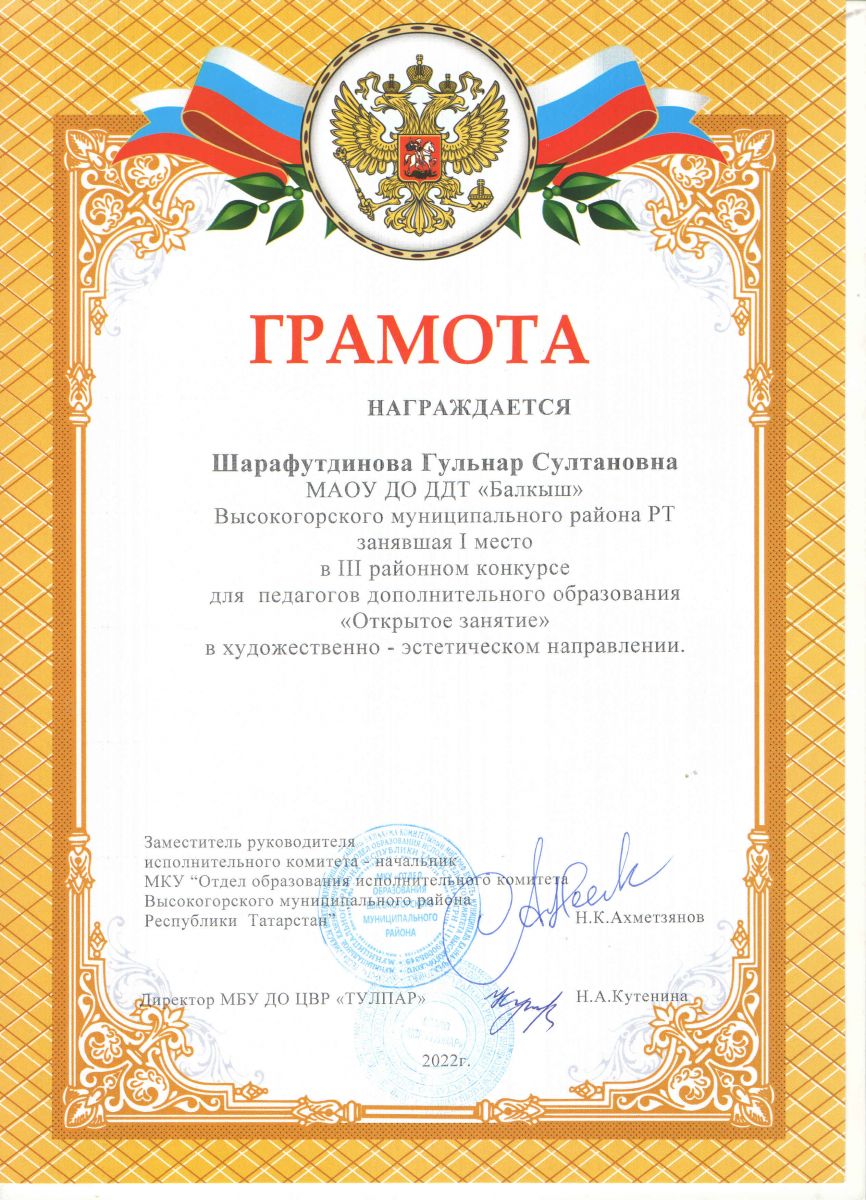 Муниципальное автономное образовательное учреждение дополнительного образования Дом детского творчества «Балкыш» Высокогорского муниципального района РТ