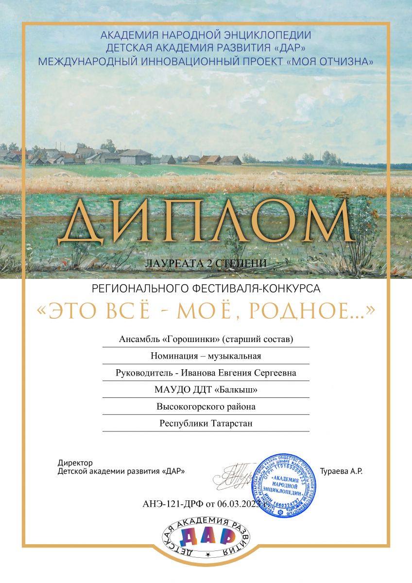 Ансамбль "Горошинки" - региональный конкурс "Это всё- моё, родное", лауреат 2 степени