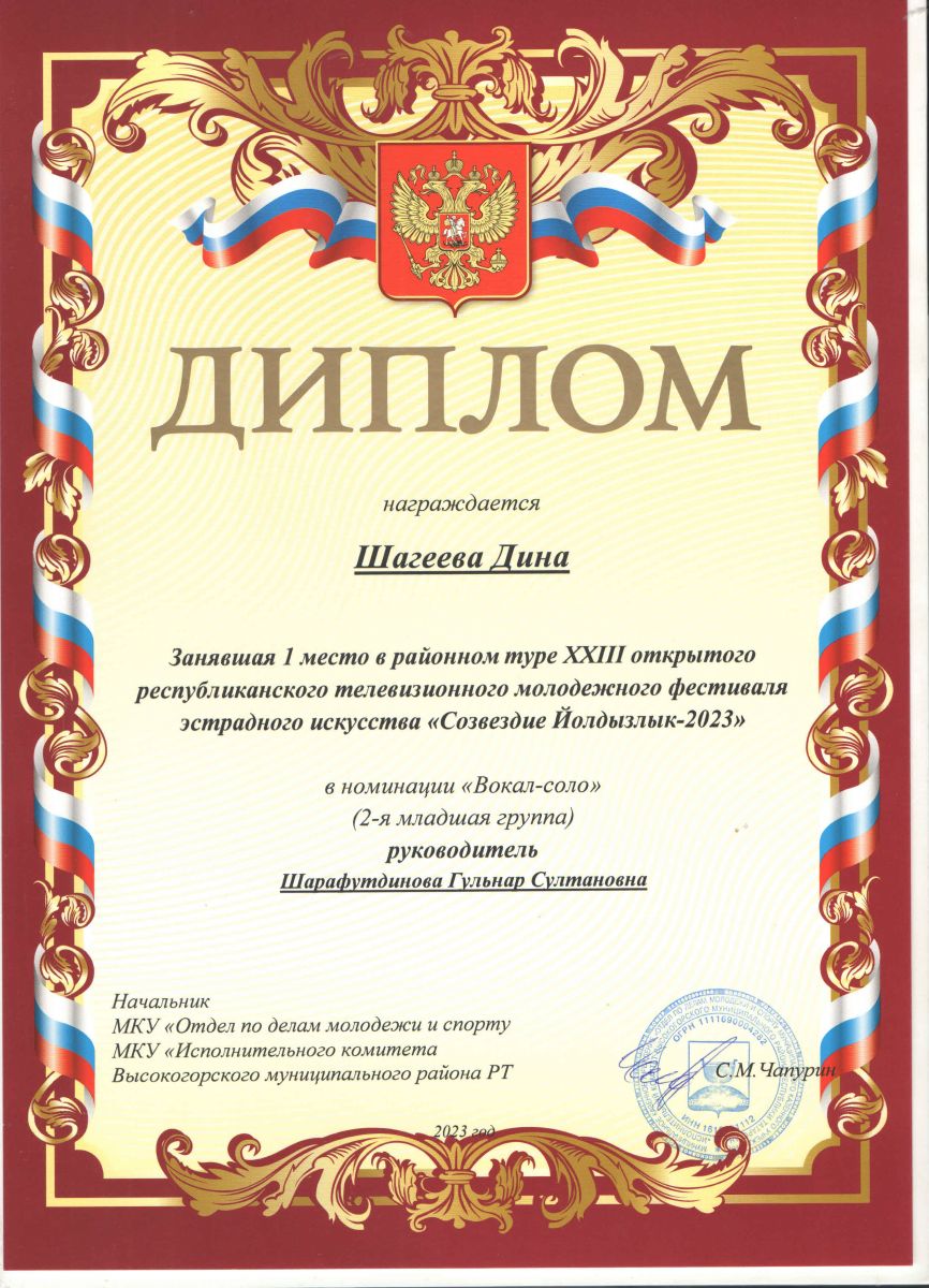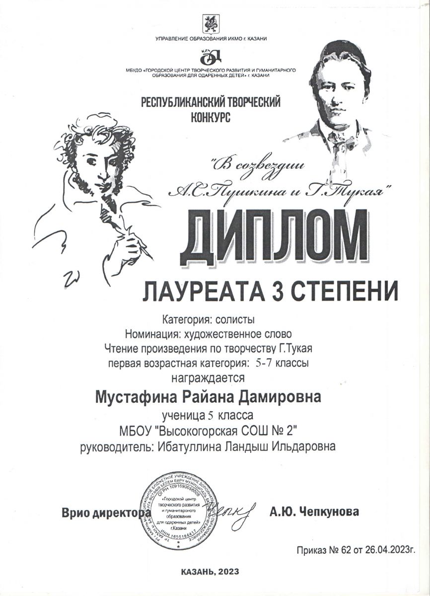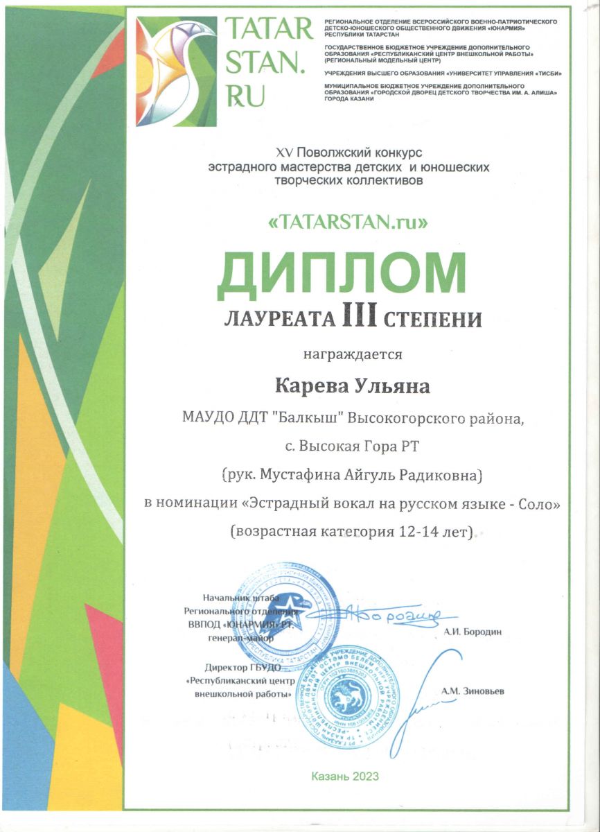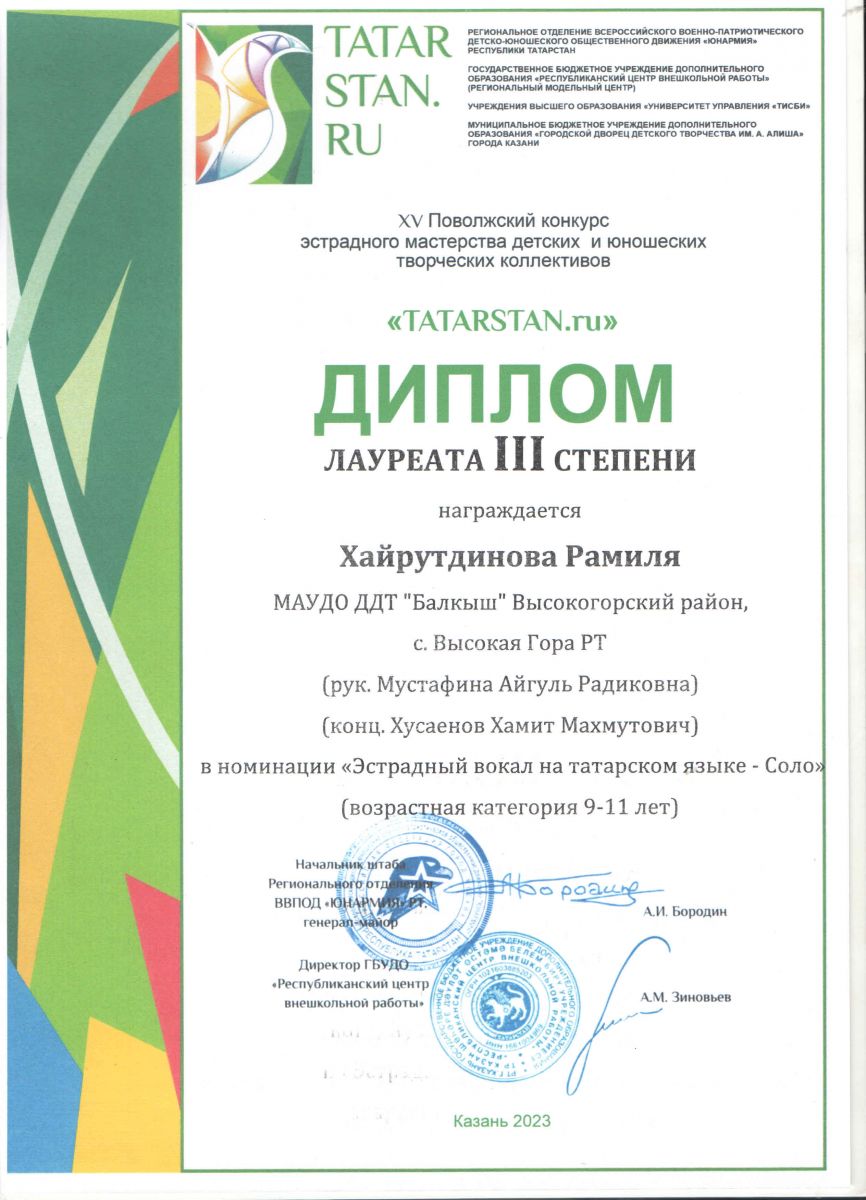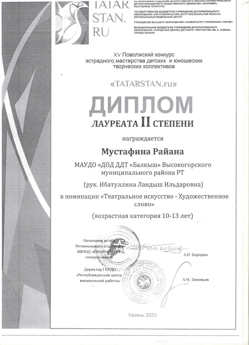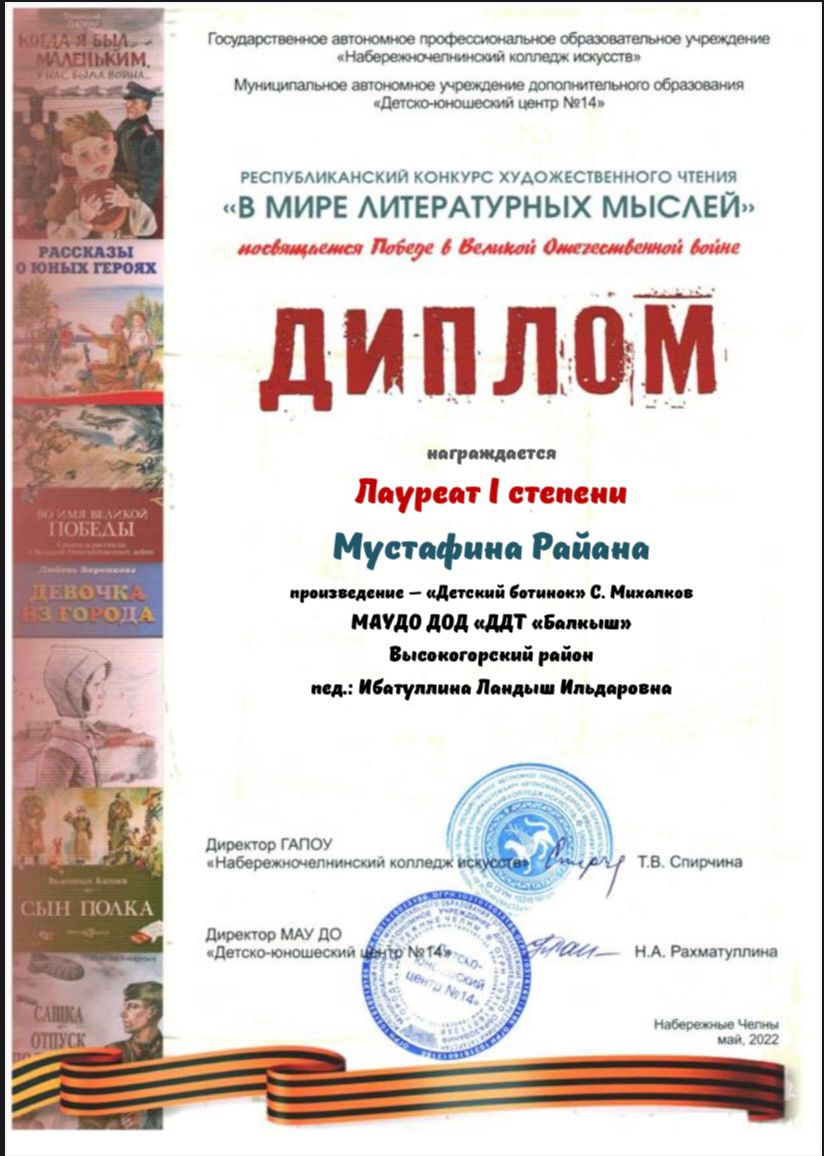 Биктагирова Амина - Республиканский конкурс-фестиваль "Патриоты России", лауреат 1 степени