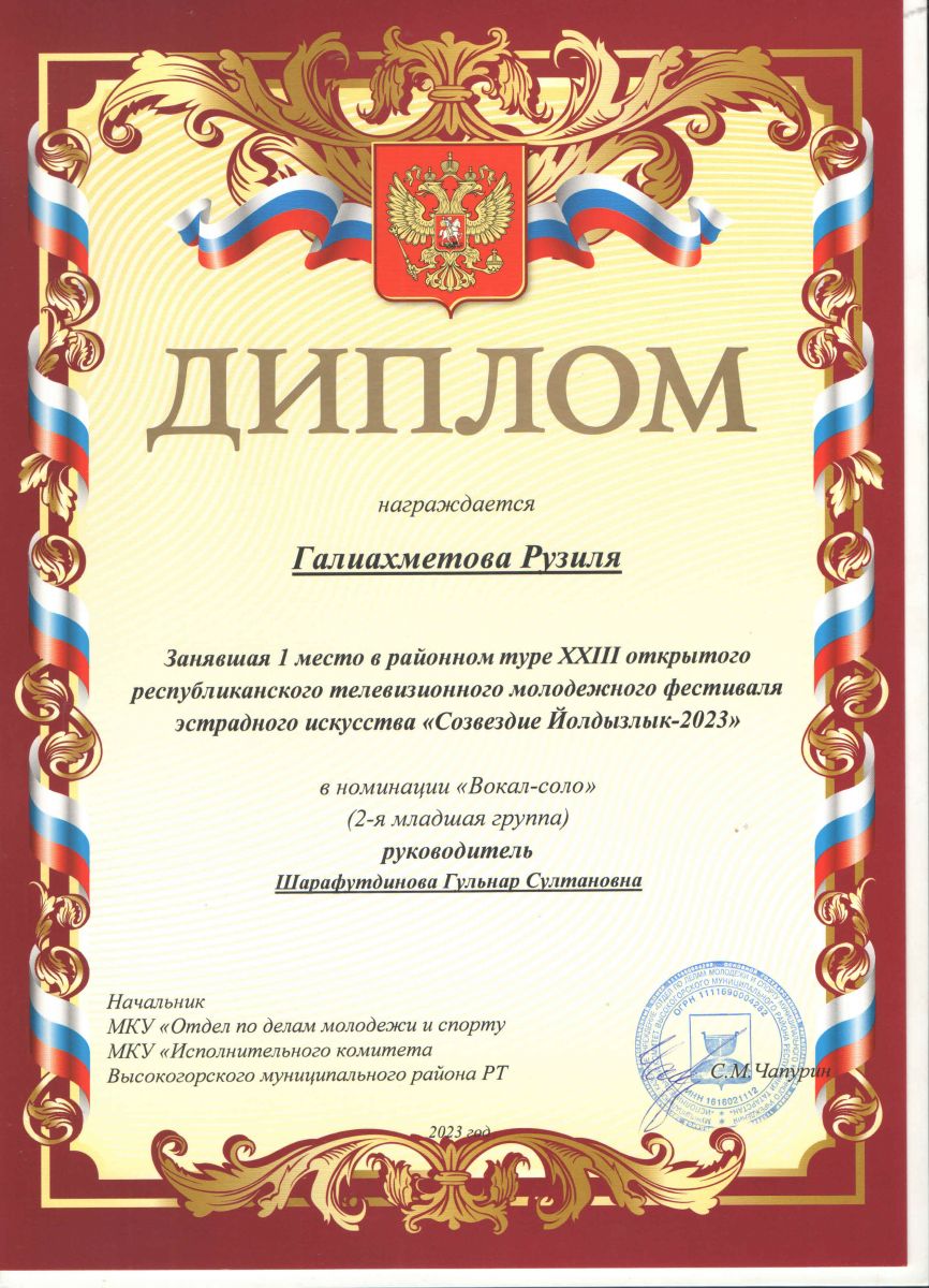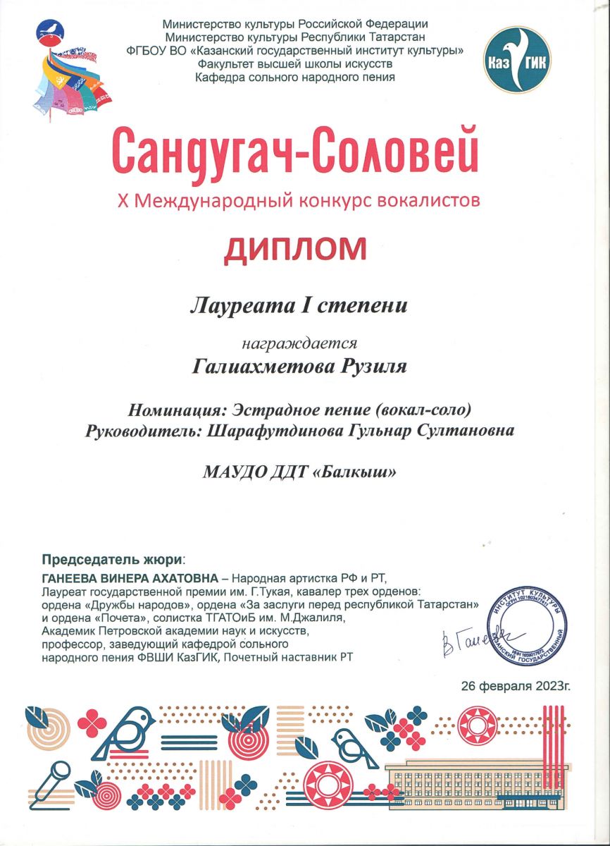 Галиахметова Рузиля - 10 Межднуародный вокальный конкурс "Сандугач- Соловей", лауреат 1 степени