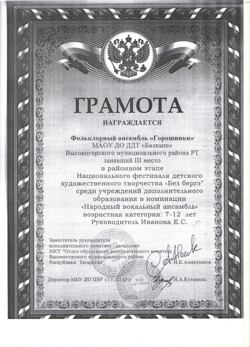 Муниципальное автономное образовательное учреждение дополнительного образования Дом детского творчества «Балкыш» Высокогорского муниципального района РТ
