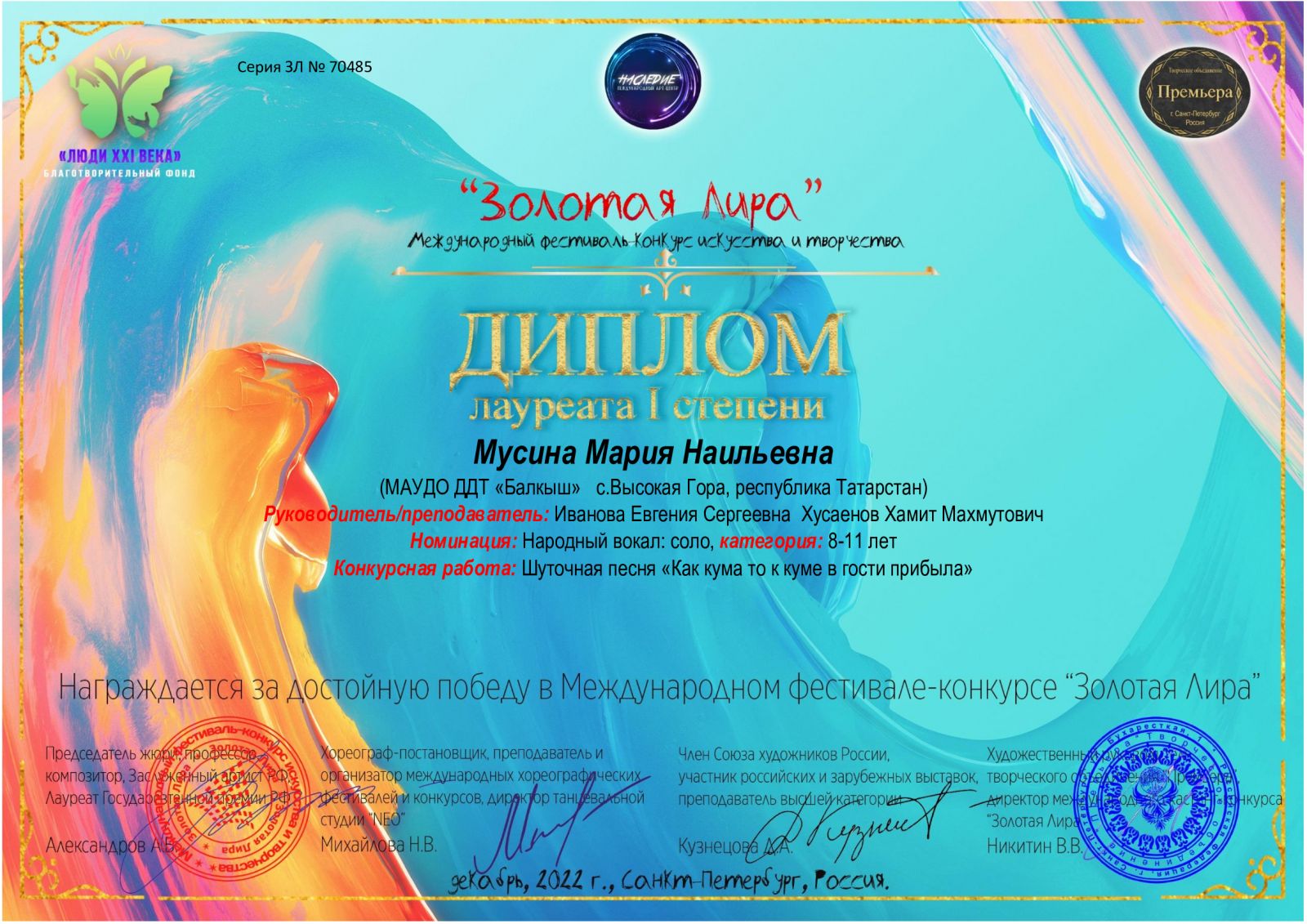 Мусина Мария - региональный конкурс "Это всё- моё, родное", лауреат 2степени