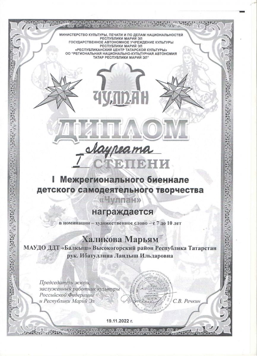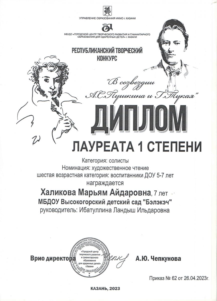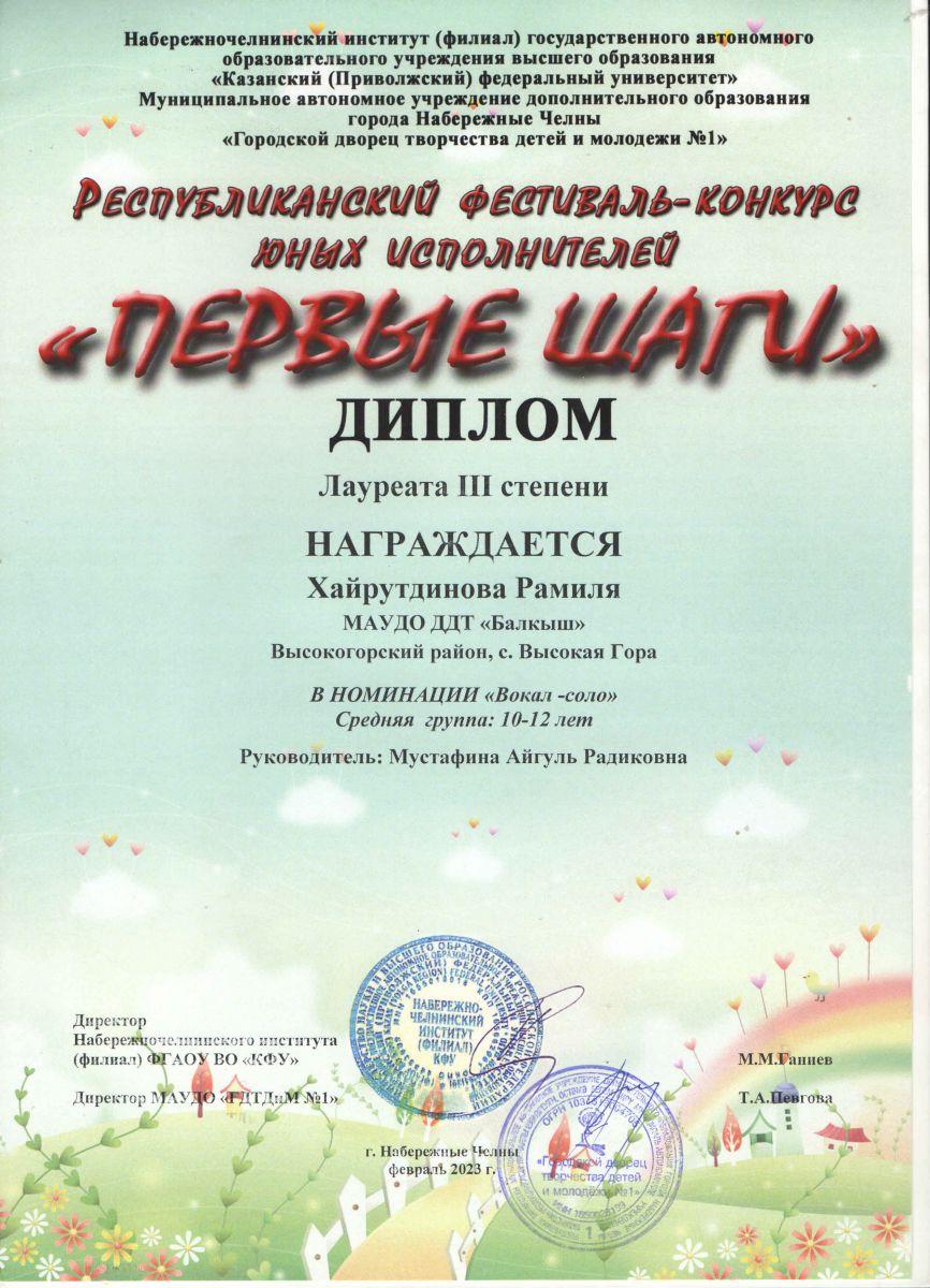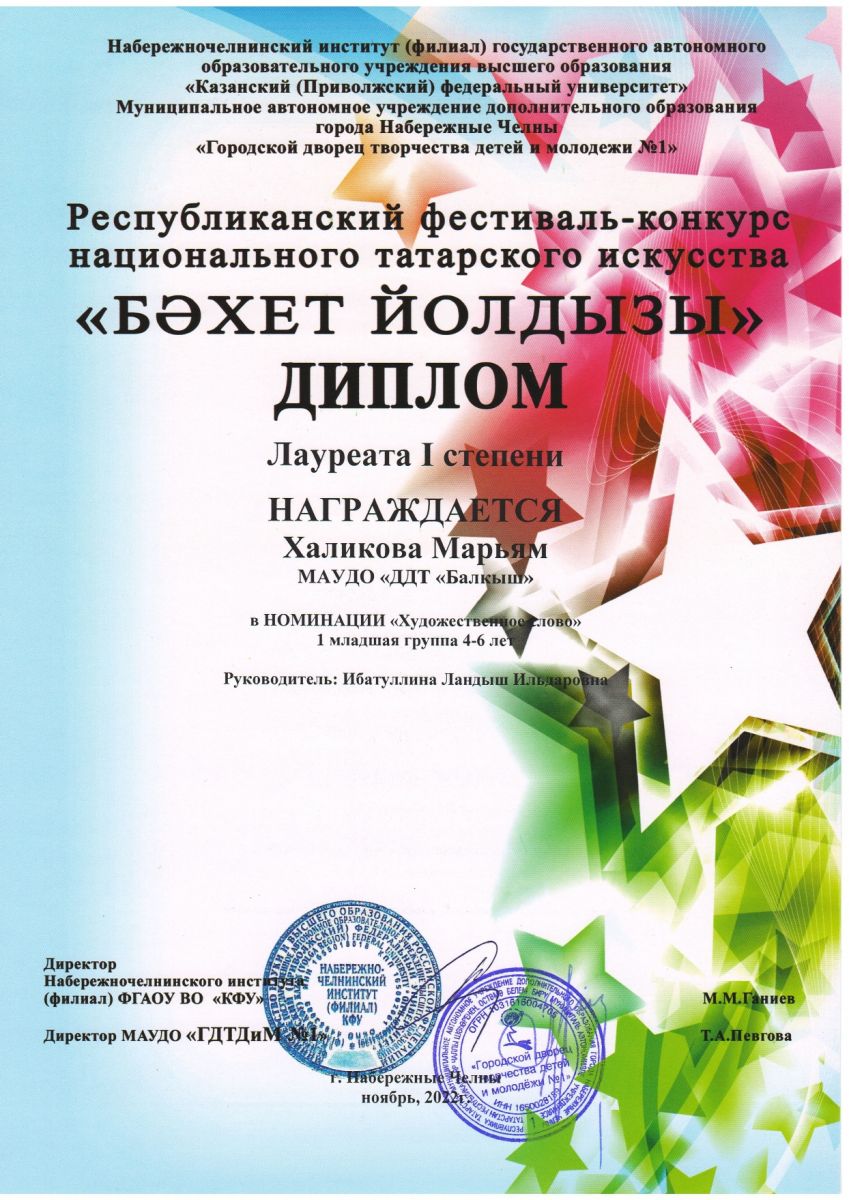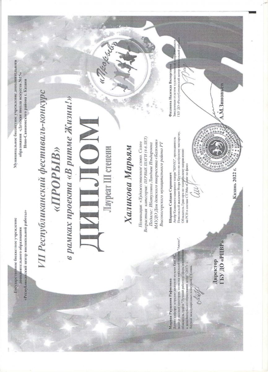 Халикова Марьям - Республиканский фестиваль- конкурс "Прорыв", лауреат 3 степени