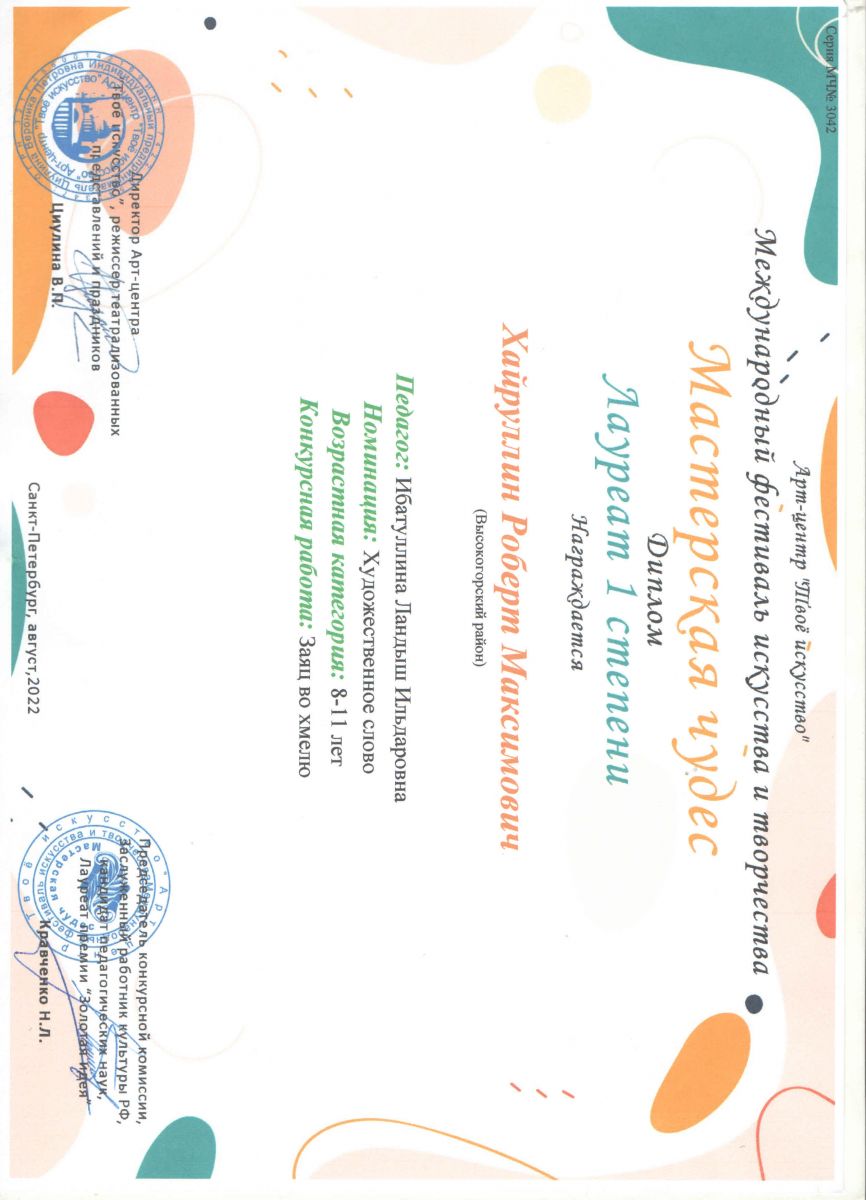Фатхуллин Азамат - международный конкурс "Декоративно-прикладное искусство", 1 место