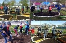 Сегодня все классы нашей школы участвовали на благоустройтве терриотрии школы и работали на своих цветочных клумбах