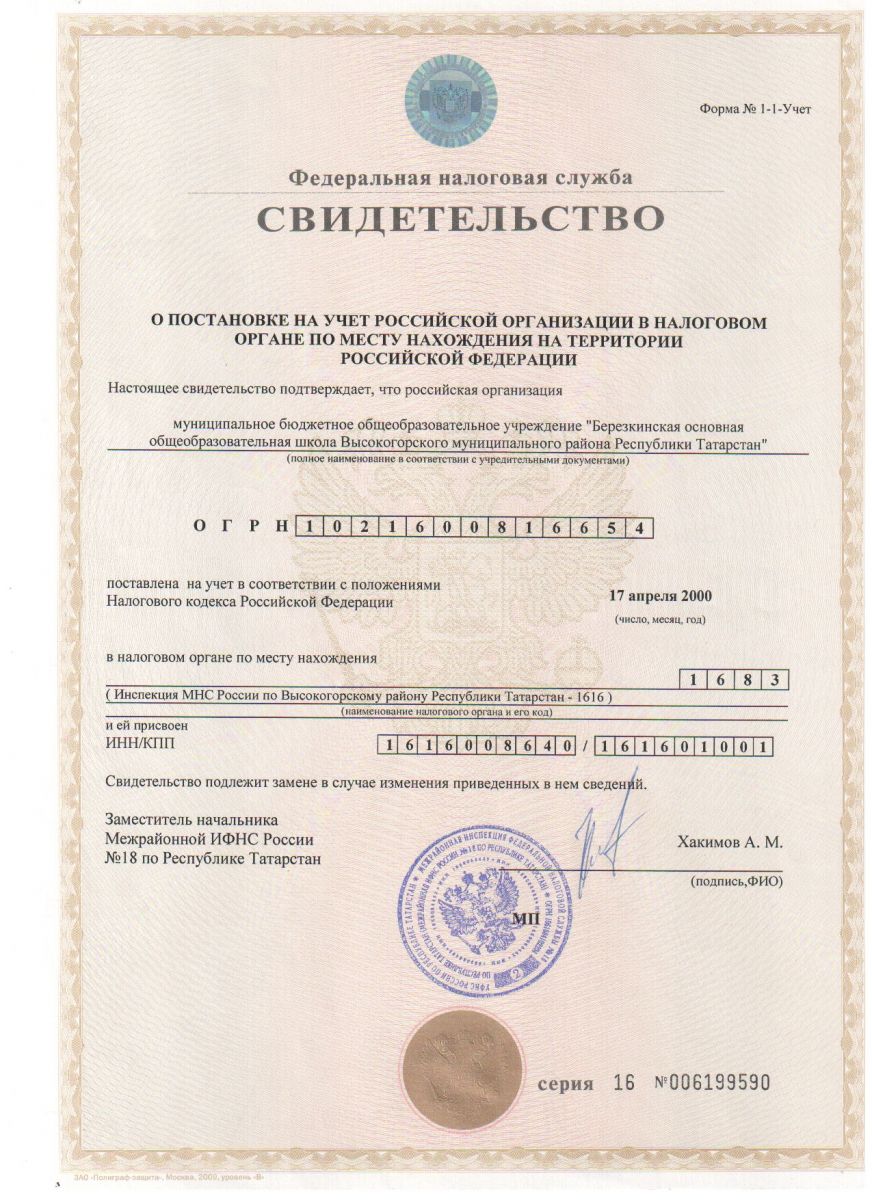муниципальное бюджетное общеобразовательное учреждение «Березкинская основная общеобразовательная школа Высокогорского муниципального района Республики Татарстан"