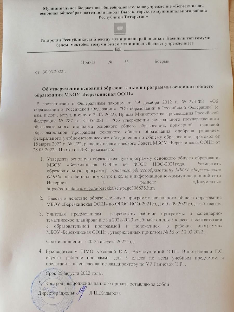 муниципальное бюджетное общеобразовательное учреждение «Березкинская основная общеобразовательная школа Высокогорского муниципального района Республики Татарстан"
