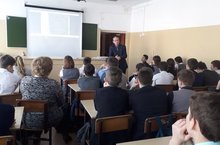 Встреча старшеклассников с директором районного краеведческого музея, с Шигабутдиновым Билалом Салаховичем. Выступление было посвящено 75 летию снятия блокады Ленинграда.