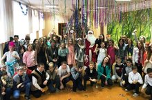 В 12 часов новогодний праздник встречали учащиеся 5-6 классов. Каждый класс показал свои новогодние представления, и сфотографировались с Дедом Морозом