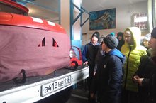 В первую очередь ребят, конечно же, заинтересовали пожарные машины. Старший пожарный показал ребятам пункт связи депо, технику. Он рассказал про пожарную технику и показал детям, как и чем оборудованы машины, для чего служит тот или иной предмет из многочисленного пожарно-технического вооружения. Специально для юных гостей сотрудники учреждения разрешили ребятам подняться в машины, ощутить себя пожарными.