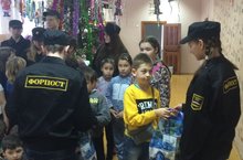 Форпостовцы нашей школы поздравили обучающихся начальных классов с Новым 2017 годом и подарили детям новогодние подарки!