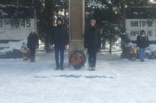 отряд "Атлант" (МФООП "Форпост") МБОУ "Бирюлинской СОШ" под руководством руководителя отрядя - учителя ОБЖ Камаева Н.Р. почтили память Героям России и Героям Советского Союза и возложили венки у обелиска.