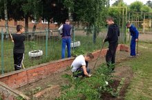 Ребята из лагеря труда и отдыха сегодня согласно своему плану продолжали облагораживать территорию пришкольного участка.