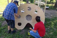 Проектной работой ЛТО "Прометей" выбрал клумбу "Палитра художника". Под руководством и с помощью воспитателей ребята каждый день по этапам делают свою работу. После того, как заготовка палитры была нарисована и вырезана из фанеры, ребята отшкурили ее и покрыли лаком.