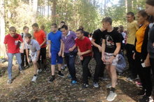 5-11 классы на стадионе поселка сдавали нормативы ГТО: прыжки в длину с места, бег 60 м, отжимание, викторина(вопросы на знание истории зарождения ГТО).