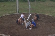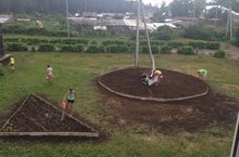 Даже самые маленькие ребята не отстают от старших товарищей, просят научить их играть в волейбол. И тем, и этим занятие очень нравится.