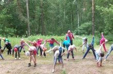 Каждое утро в нашем лагере проходит зарядка на свежем воздухе, в которую входит бег по лесной тропинке и физические упражнения.