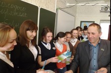 День молодого избирателя прошел сегодня в школе. Классные руководители 11-х классов Татьяна Юрьевна Усова и Любовь Ивановна Ларина организовали мероприятие "Я - избиратель". Сначала старшеклассникам предложили посмотреть презентацию "Выборы и молодежь", затем меропиятие проходило в игровой форме: каждая команда представляла свою партию, В конце провели пробные выборы. Гостем у ребят был председатель Бирюлинского СМС Р.Х.Багаутдинов.