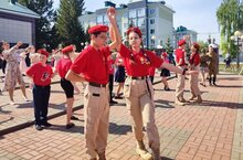 Юнармейцы 5-10 классов школ района вальсировали под песни военных лет.. Получилось эффектно, ярко и зрелищноБезнең мәктәпнең яшь армиячеләре бүген Дан аллеясында узган «Җиңү вальсы» Бөтенроссия патриотик акциясендә катнаштылар. Район мәктәпләренең 5-10 сыйныф яшь армиячеләре сугыш еллары җырлары астында вальслыйлар.. Бу искиткеч, якты һәм тамашалы килеп чыкты