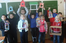 Конкурс на лучшую кормушку объявил в школе Дедушка Мороз и на праздновании Нового года наградил всех учеников и родителей, кто смог смастерить замечательные кормушки.